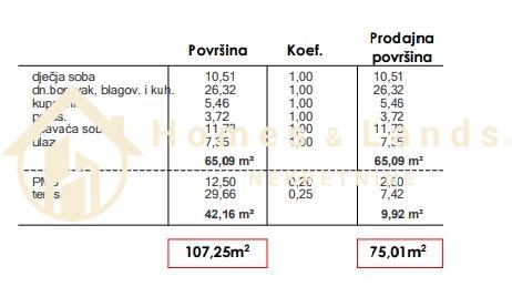 Stan S3 zgrade 2 na 2 katu ukupne korisne površine 107,25m2 (obračunske površine 75,01m2) sastoji se od ulaznog hodnika,kuhinje s blagovaonicom,velikog dnevnog boravka,dvije spavaće sobe,kupaonice,natkrivene terase i parkinga.