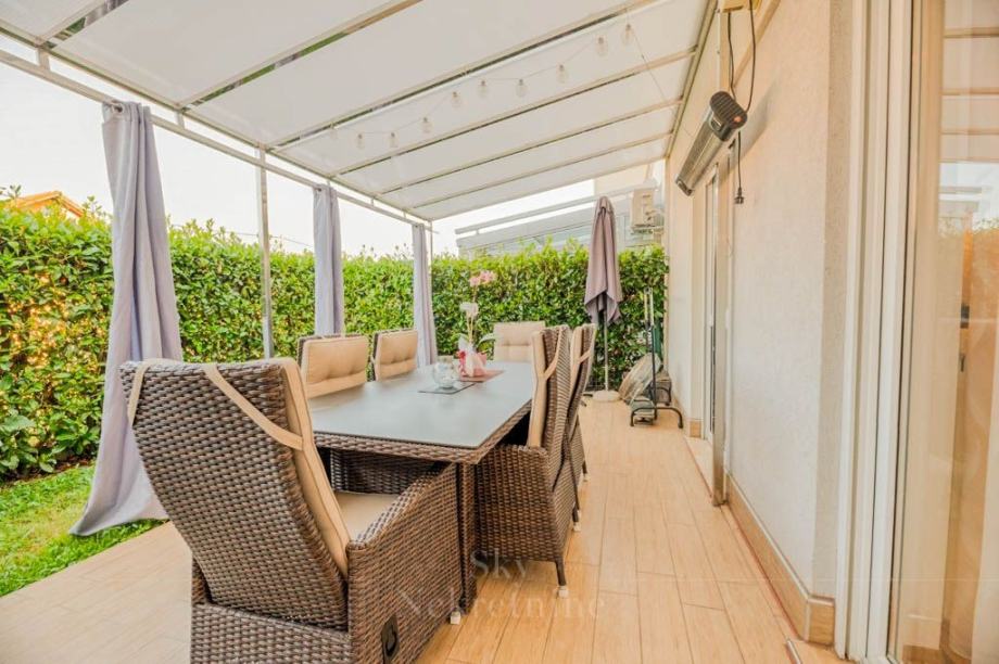 Njegova površina iznosi 106,41 m2, a sastoji se od ulaznog hodnika, open-space dnevnog boravka, kuhinje i blagovaonice, dvije spavaće sobe, dvije kupaonice te balkona, vrta i dva parkirališna mjesta.