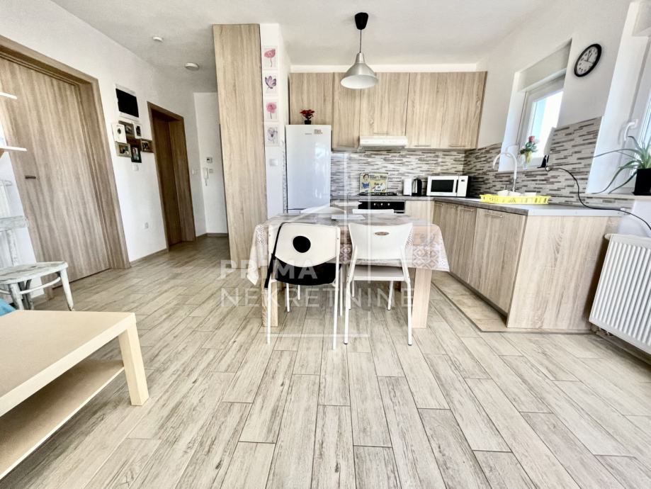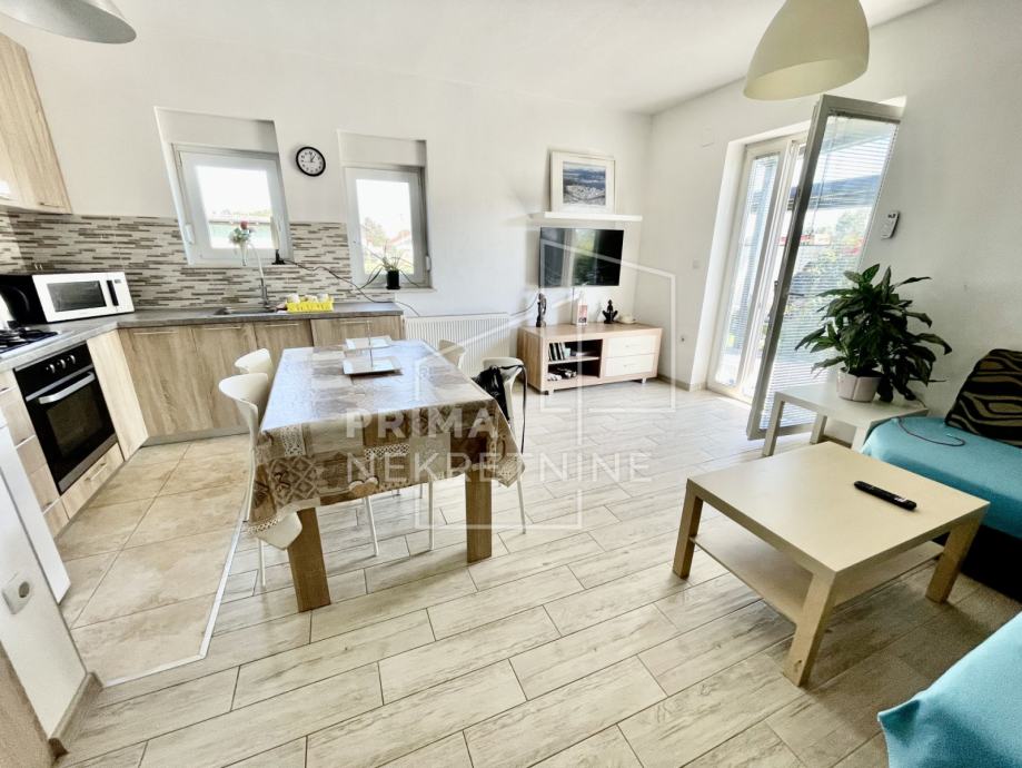 Stan u prizemlju sastoji se od dvije spavaće sobe, wc-a, dnevnog boravka s izlazom na dvorište te kuhinje s blagavaonicom.