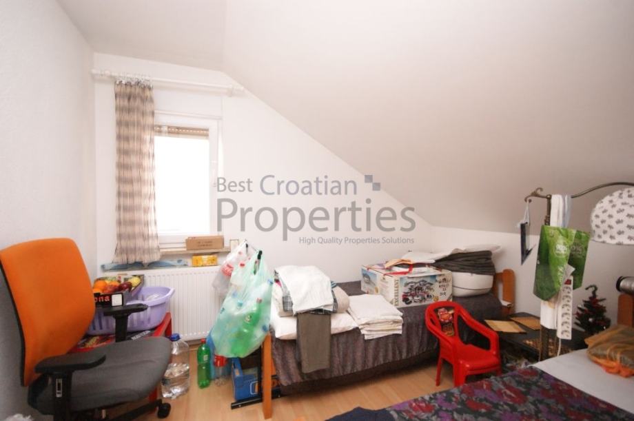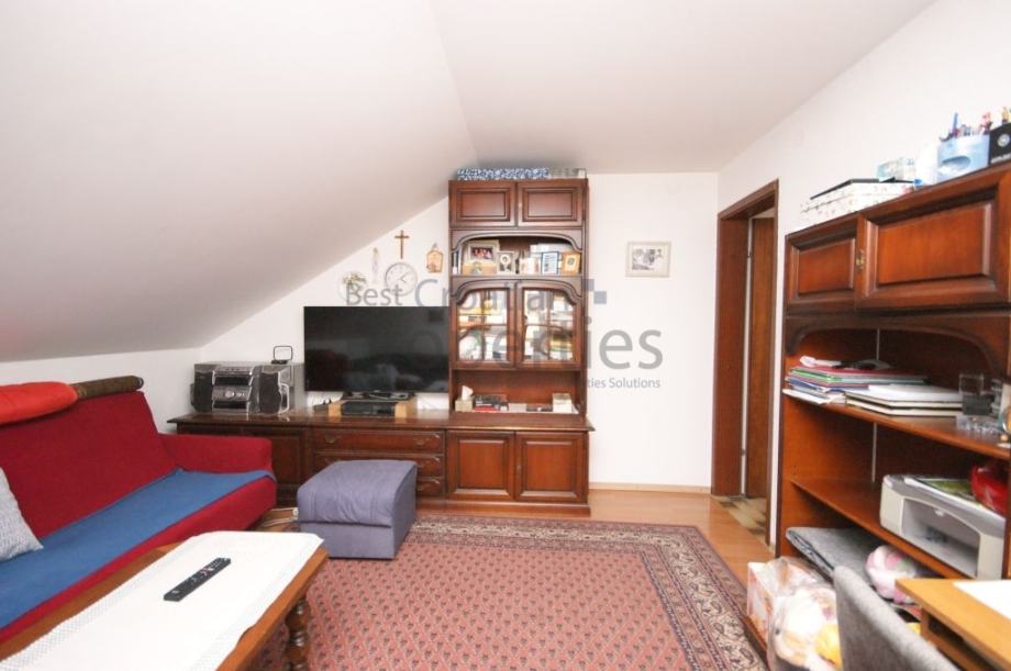 Ova prostrana obiteljska kuća od 336 m2 s tri odvojena stana sagrađena je 1990-ih godina u naselju Sesvete, u mirnoj slijepoj ulici. Kuća je sagrađena na samom kraju ulice, što daje dodatni mir stanovanju.