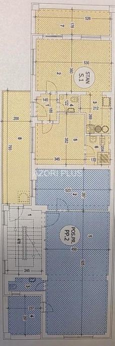 Prvi kat- stan 52,75 m2 i poslovni prostor (ured) sada u funkciji stana 66,60 m2
