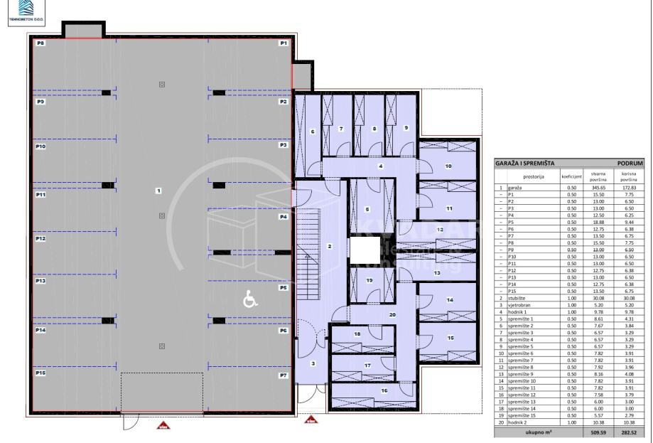 - garažna parkirna mjesta i spremišta u suterenu zgrade