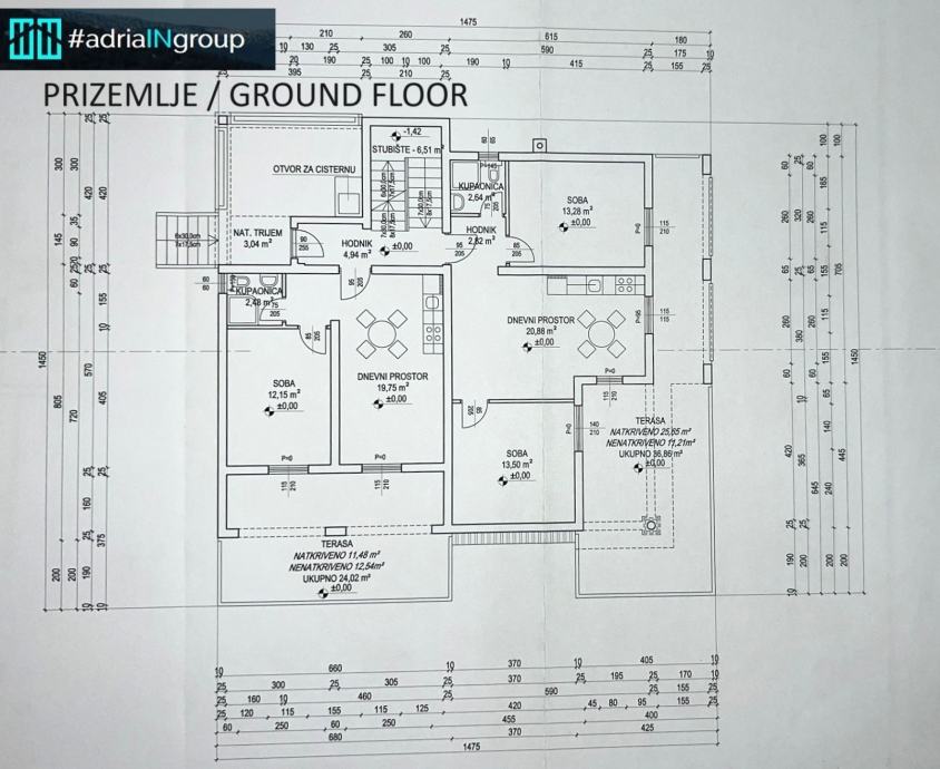 - PRIZEMLJE: dvosoban i jednosoban apartman + terasa
