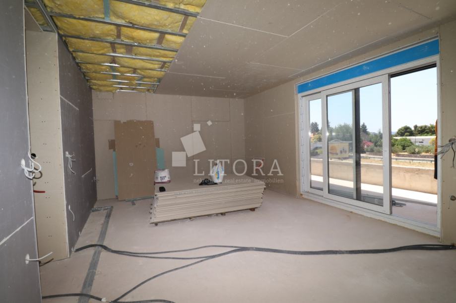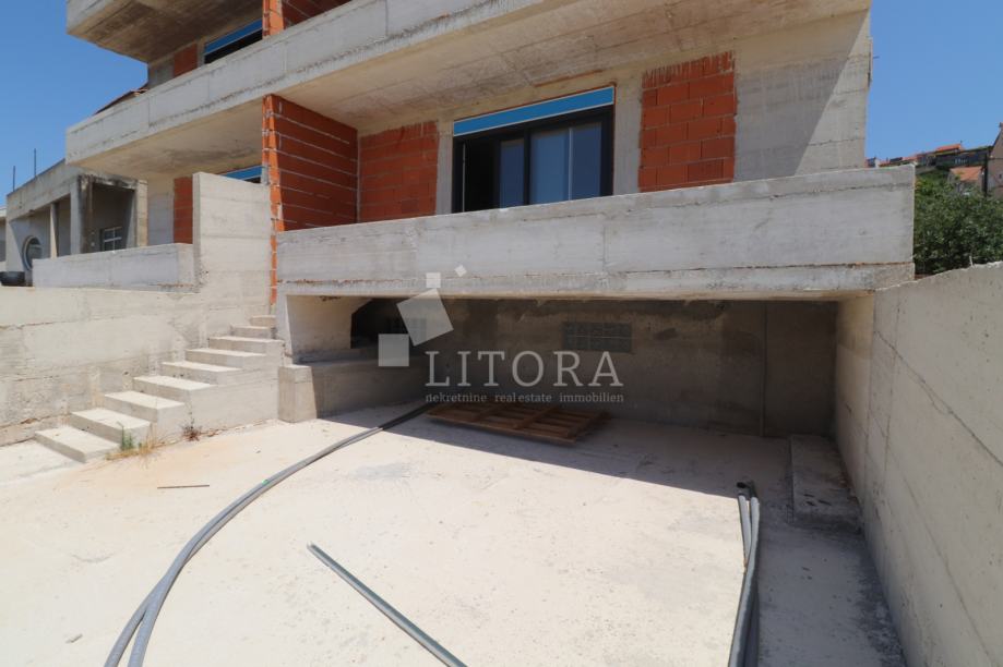 Šibenik – Crnica, novogradnja: moderni dvosobni komforni stan s dvorištem i ostavom. U mirnom dijelu Šibenika, u naselju Crnica, u ponudi je moderni i prostrani stan smješten u prizemlju manje stambene zgrade u izgradnji. Stan je orijentiran na jugoistočnu stranu, što osigurava obilje prirodne svjetlosti tijekom cijelog dana. Stan ima ukupnu površinu od 84,83 m² i sastoji se od hodnika, dvije kupaonice, dvije spavaće sobe te velikog dnevnog boravka povezanog s kuhinjom i blagovaonicom, iz kojeg se izlazi na prostranu natkrivenu terasu od 16,39 m² – idealnu za opuštanje i boravak na otvorenom. Posebnu vrijednost nekretnine čini dvorište površine 70 m², koje pruža privatnost i dodatni prostor za uređenje po želji, kao i praktična ostava od 12 m² te dva osigurana parkirna mjesta. Zgrada je trenutno u izgradnji, a planirani završetak radova i useljenje predviđeni su za proljeće 2026. godine. Lokacija je atraktivna i odlično povezana – u blizini svih javnih sadržaja. Od centra grada udaljena je 1,8 km, dok je popularna gradska plaža „Banj“ na svega 800 m.