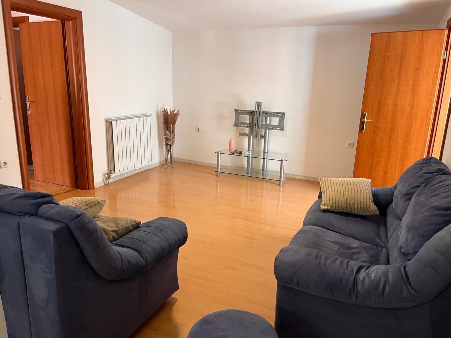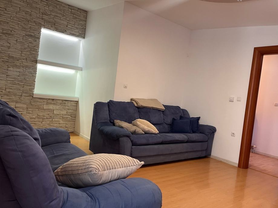 Objekt s tri stana. Stan se sastoji od hodnika, kuhinje i blagavaonice, dnevnog boravka, kupaonice, dodatnog wc-a, 3 spavaće sobe, balkona i velike terase. Stanu pripadaju dva parking mjesta. Moguca zamjena za stan u Zagrebu!!