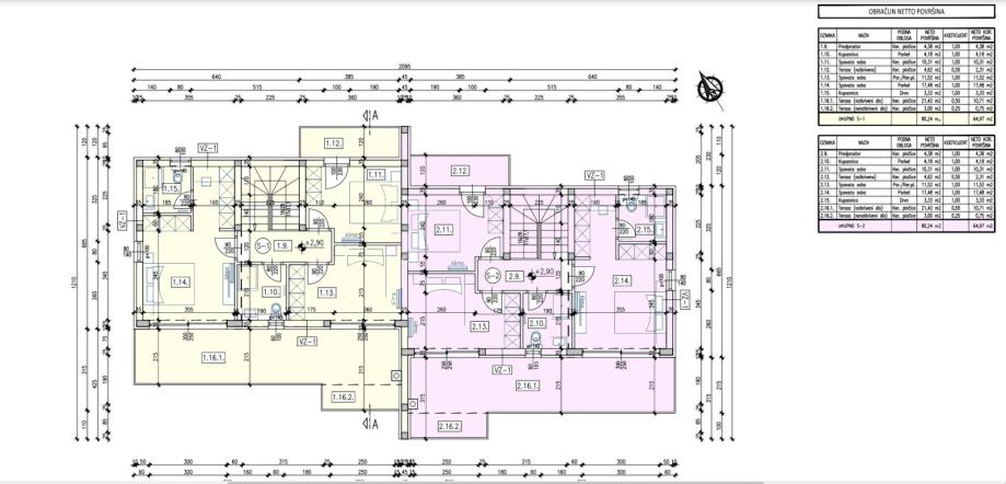 S2 stan ima ukupnu neto korisnu vrijednost površine 190,39m2 .U prizemlju površine se nalazi ulazni prostor, hodnik, ostava, kuponica, spavaća soba , unutanje stepenice ,kuhinja s blagavaonicom i dnevni boravak s izlazom na terasu gdje se dodatno nalazi ljetna kuhinja, bazen površine 25m2 . Na katu kuće se nalazi hodnik, master spavaća soba s zasebnom kupaonicom i garderobom i izlazom na terasu, kupaonica, dvije spavaće sobe s izlazom na terasu odnosno na balkon.