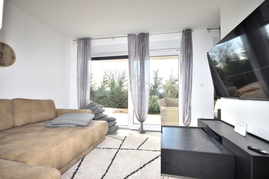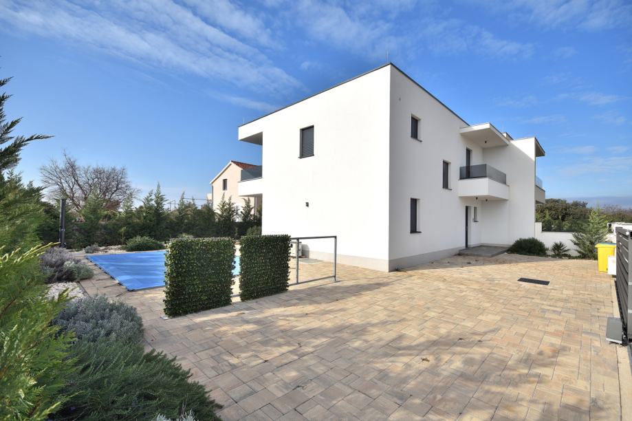 Kuća je projektirana tako da ima dosta privatnosti i pogodna je za potpuni komfor tijekom boravka ljeti ali i za cjelogodišnje življenje. Od mjesta Jadrija gdje ima predivnih plaža kuća je udaljena svega nekoliko minuta vožnje autom.Kuća je završena i namještena te se trenutno koristi za turistički najam s visokim ocjenama od strane gostiju