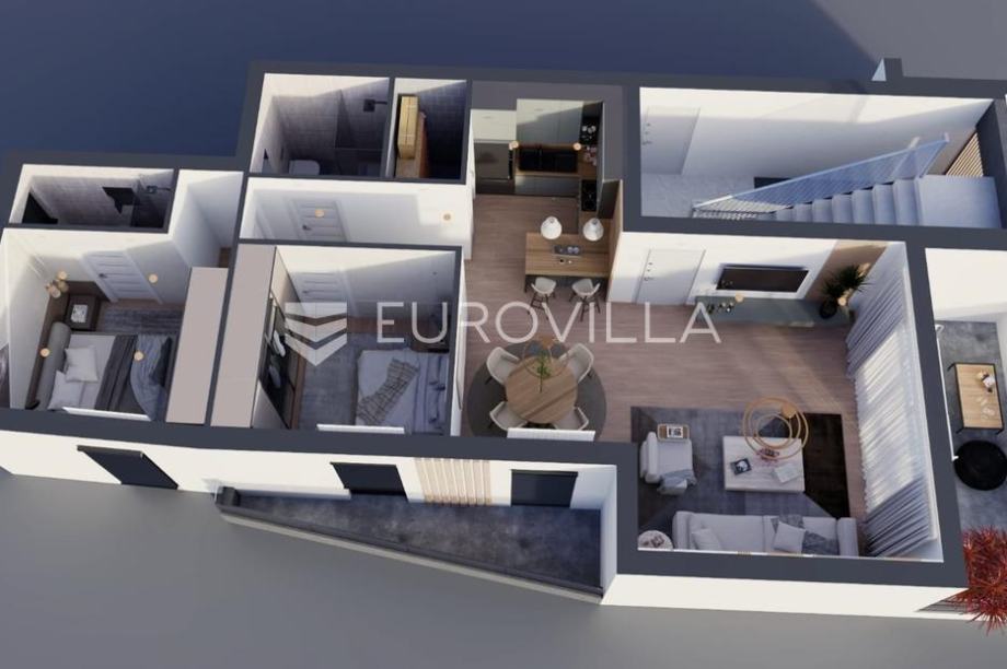 Komforan, dvosoban stan na drugom katu, ukupne korisne površine 90,5 m2.Sastoji se od dvije spavaće sobe od kojih je jedna s vlastitom kupaonicom, kuhinje, blagovaonicom i dnevnog boravka otvorenog tipa, glavne kupaonice, hodnika i ostave te loggie ispred dnevnog boravka i balkona.Zatvorena...Za ovu nekretninu kontaktirajte agenta na broj telefona +385 91 230 0187.Više na Eurovilla.hr, ID: 807616Direktan link: https://eurovilla.hr/nekretnina/sibenik-brodarica-komforan-dvosoban-stan-90-5-m2-i-2-garazna-mjesta/807616/-----Comfortable, two-bedroom apartment on the second floor, with a total usable area of 90.5 m2.It consists of two bedrooms, one of which has its own bathroom, an open-plan kitchen, dining room and living room, a main bathroom, a hallway and a storage room, and a loggia in front of the living room and... For this property contact our agent on telephone number +385 91 230 0187.More on Eurovilla.hr, ID: 807616Direct link: https://eurovilla.hr/en/property/sibenik-brodarica-2-room-apartment-90-5-m2-with-2-garage-spaces/807616/...