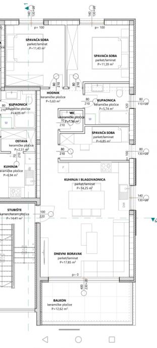 Ukupna neto korisna površina: 81,08 m²