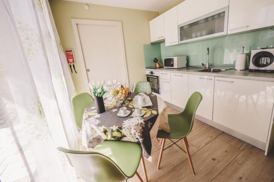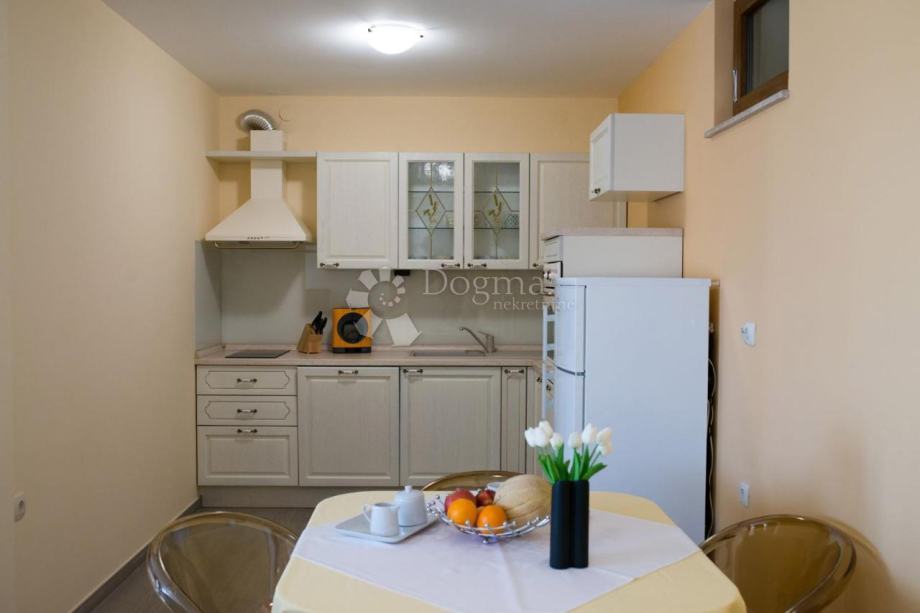 U prizemlju se nalazi kotlovnica sa garažom, te apartman od 42 m2 koji s sastoji od sobe, dnevnog boravka sa kuhinjom i kupaonom.