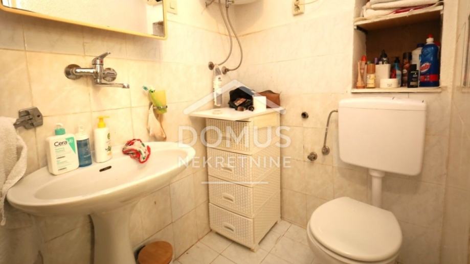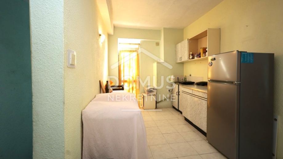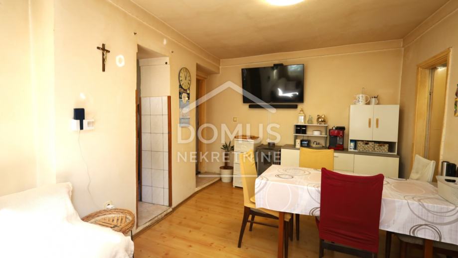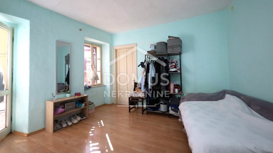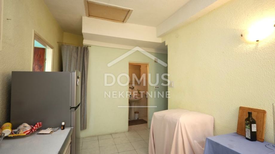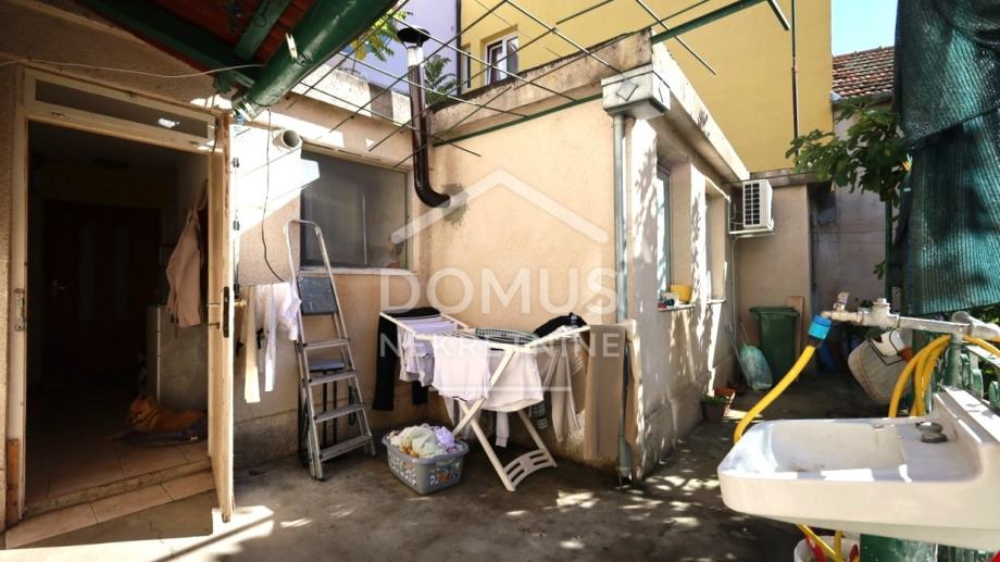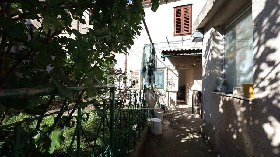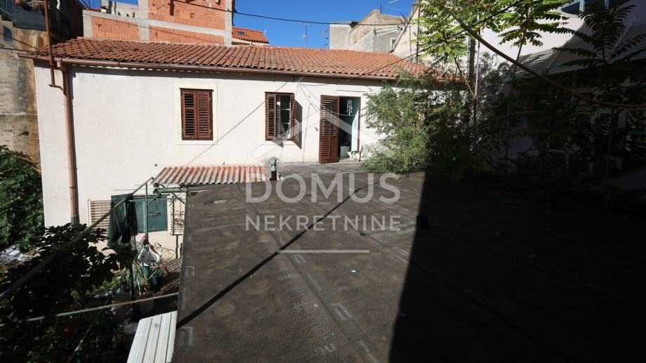 Šibenik centar, atraktivna lokacija u blizini tržnice i svih bitnih sadržaja, kuća u nizu za adaptaciju ukupne korisne površine 152,05 m2 na parceli površine 285 m2. Kuća se sastoji od spremišta u podrumu, dvije odvojene stambene jedinice (prizemlje i kat) te pomoćnog objekta u vrtu. U prizemlju se nalazi stan koji se sastoji od hodnika, kuhinje, dnevnog boravka i blagovaonice, dvije spavaće sobe od kojih jedna soba ima vlastitu kupaonicu dok druga soba ima vlastiti wc, zasebne kupaonice i ostave. Poseban ulaz za stan na katu koji se sastoji od kuhinje sa blagovaonicom, dnevnog boravka, jedne spavaće sobe, kupaonice i velike nenatkrivene terase od 49,68 m2. U dvorištu se nalazi vrt te pomoćni objekt od 16,56 m2. Parking dostupan na javnoj površini u blizini. Udaljenost do mora iznosi samo 300m.