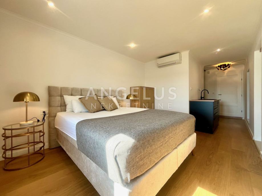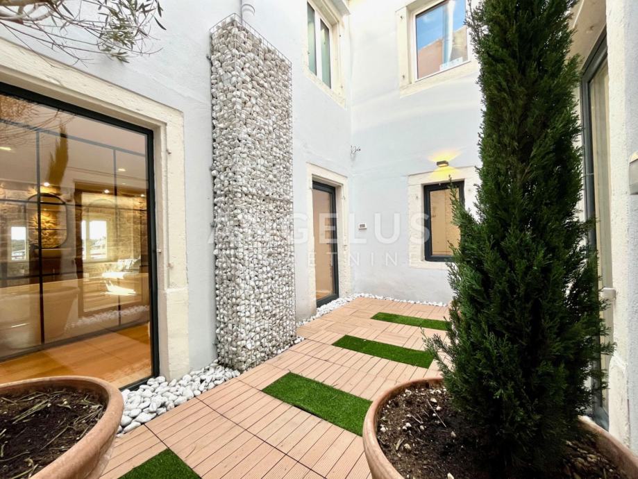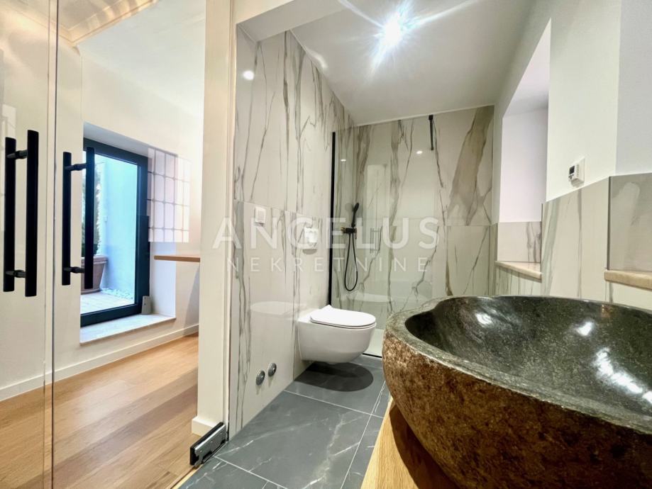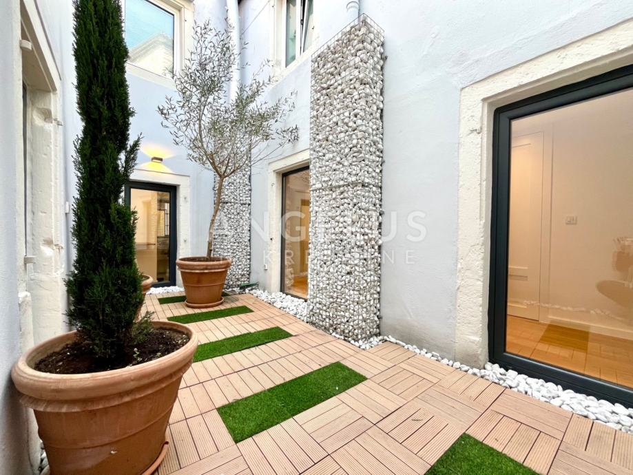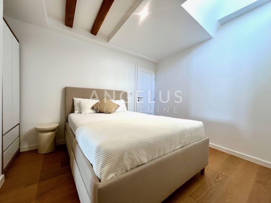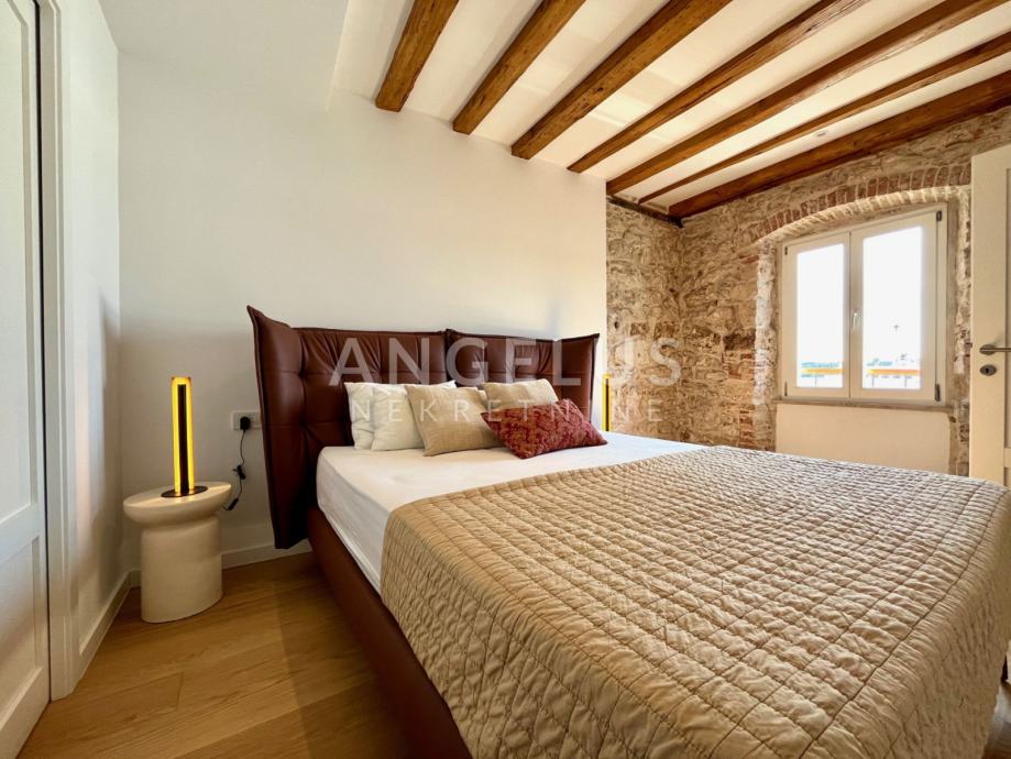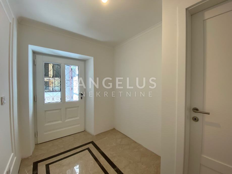 Predivan luksuzni stan cca NKP 150m2 kompletno je adaptiran, adaptacija je bila opsežna tako da su promjenjene sve instalacija u stanu, novi podovi napravljeni, kamen zaštićen, grede također, promjenjena je vanjska stolarija i škure, izvedeno sve najnovijim tehnologijama i opremljen visokokvalitetnim materijalima.
