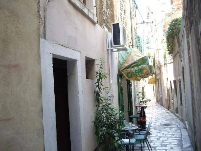 U centru Šibenika, u srcu stare gradske jezgre, autohtona kamena kuća koja je poslovno-stambeni objekt sa 144,77 m2 korisne površine. U prizemlju je poslovni prostor (caffe) sa 77,75 m2 koji ima bar sa šankom i separe sa stolovima (sa ukupno 34 sjedeća mjesta), kuhinja, garderoba, wc za goste M+Ž, i wc za osoblje. Prostor je lijepo uređen, klimatiziran, elektro-grijalice postavljene; a prostor ima u korištenju i terasu – štekat (10 m udaljen) na novouređenoj šetnici sa 6 stolova (24 stolice). Poseban ulaz za kat gdje se nalazi stan površine 67,02 m2 koji se sastoji od dvije sobe, kuhinja sa blagovaonom i veliki dnevni boravak sa izlazom na terasu od 13 m2, hodnik, kupaona, ostava i sve je kompletno renovirano 2000 godine i lijepo uređeno. Sa terase ima vanjske stepenice za gornju terasu površne 10 m2.