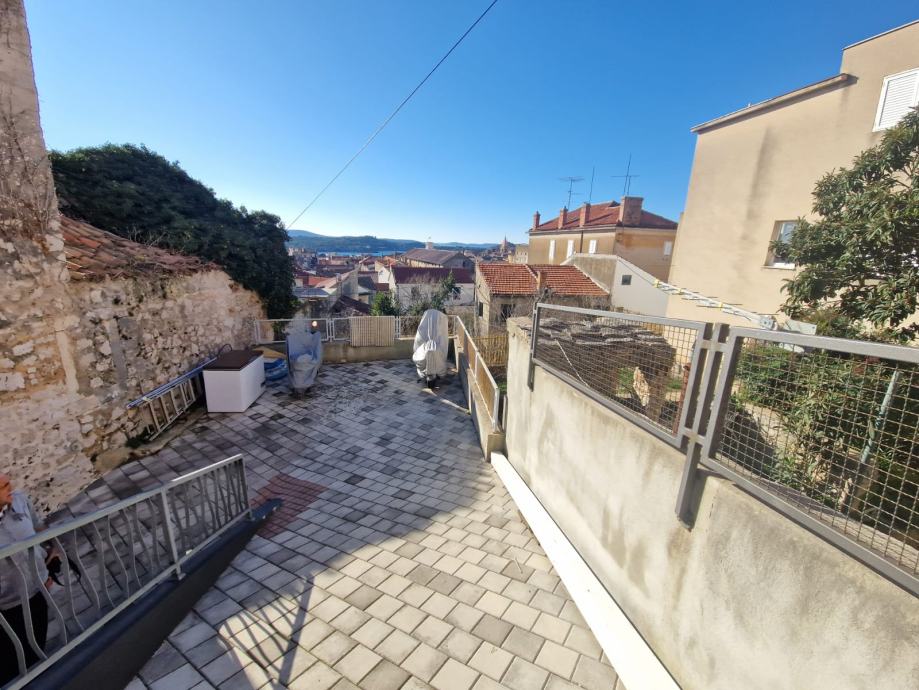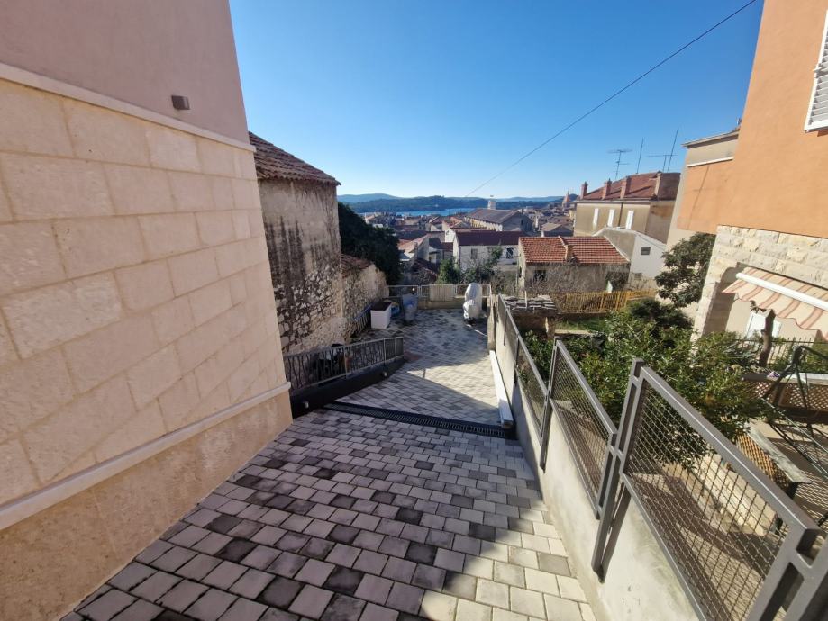 Ekskluzivno posredujemo pri prodaji lijepe kuće u gradu Šibeniku, u centru grada, Varoš. Kuća je sagrađena na parceli od 310 m2, ima u tlocrtu 170 m2. Ima okućnicu od 140 m2, urednu i održavanu, te ulaz u dvorište sa ceste i sa stepenica koje se spuštaju na rivu. Sastoji se od prizemlja , gdje je kotlovnica na pelete, površine 20 m2, svaki stan ima podno grijanje i etažno centralno grijanje, spreme od 20 m2, te jednosobnog stana. Na katu su uređena dva jednosobna stana, od koji svaki ima dio terase. Na drugom katu je lijepi trosoban komforan stan, s terasom s pogledom na more, te na potkrovlju solari, i jedna lijepa terasa s predivnim pogledom. Kuća ima dva, a moguće i tri parkirna mjesta sa sjeverne strane. Kuća je nova, u izvanrednom stanju, kompletno novopremljena, useljiva odmah, pogodna za ugodno stanovanje ali i bavljenje turizmom obzirom na lokaciju. Vlasništvo uredno, pogodna za kredit.