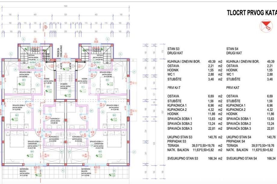 Šibenik, Crnica, NOVOGRADNJA, trosoban, dvoetažan stan NKP 166,34 m² (prodaja)