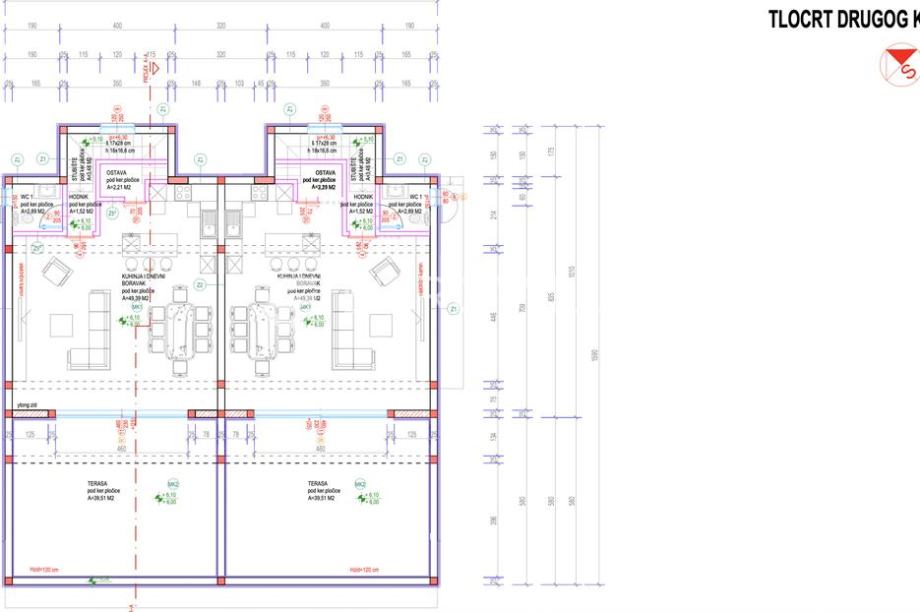 Šibenik, Crnica, NOVOGRADNJA, trosoban, dvoetažan stan NKP 166,34 m². Stan se nalazi na prvom i drugom katu moderne zgrade na odličnoj lokaciji. Pripadaju mu dva parkirna mjesta pored zgrade. Površina zatvorenog prostora je 140,76 m², površina terase je 39,51 m², te površina balkona je 5,82 m².Stan se sastoji od prvog kata na kojem su tri spavaće sobe, od kojih master soba ima privatnu kupaonicu, walk-in ormar te izlaz na balkon. Uz to na prvom katu nalazi se još jedna zasebna kupaonica. Unutarnjim stepenicama dolazi se na drugi kat gdje su dnevni boravk s kuhinjom i blagovaonicom i WC. Iz boravka izlazi se na veliku terasu s pogledom na more. U stan su ugrađeni klima uređaji, te je postavljena vrhunska toplinska i zvučna izolacija, te velike staklene stijene s troslojnim staklom.Zgrada ukupno ima 4 stana i nalazi se 350 metara od mora. Lokacija je odlična, u blizini centra grada, te u blizini plaže Banj. Zgrada je trenutno u izgradnji, te je planirani završetak proljeće 2026. godine.Za sve ostale informacije stojimo na raspolaganju....
