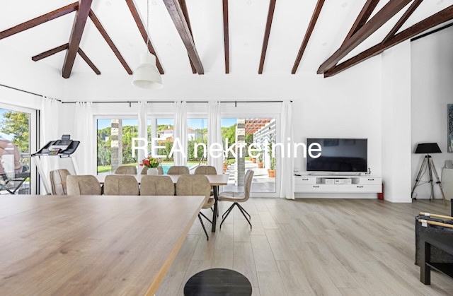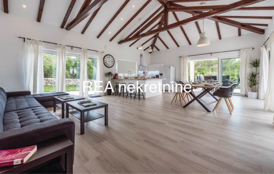 250 m2 , sastoji se od prostranog dnevnog boravka s kuhinjom i blagavaonom, 4 spavaće sobe, svaka s svojom kupaonom, te gostinjski toalet, jacuzzi, sauna….više na rea-nekretnine.hr