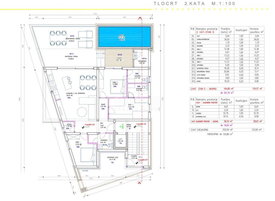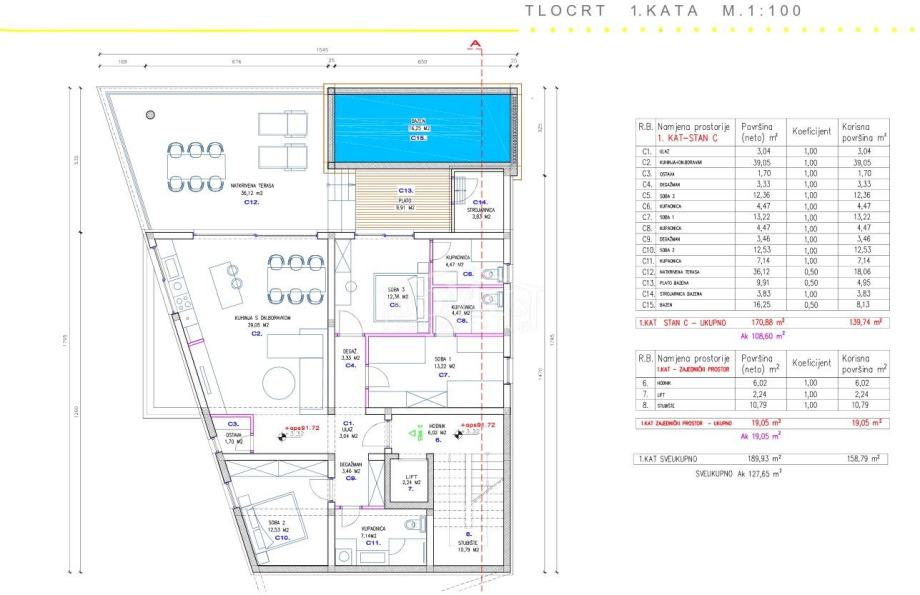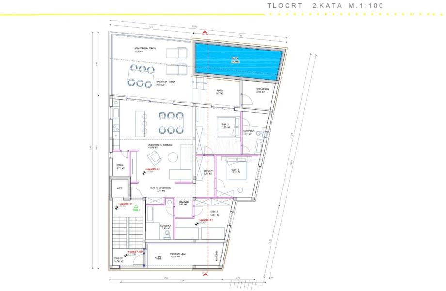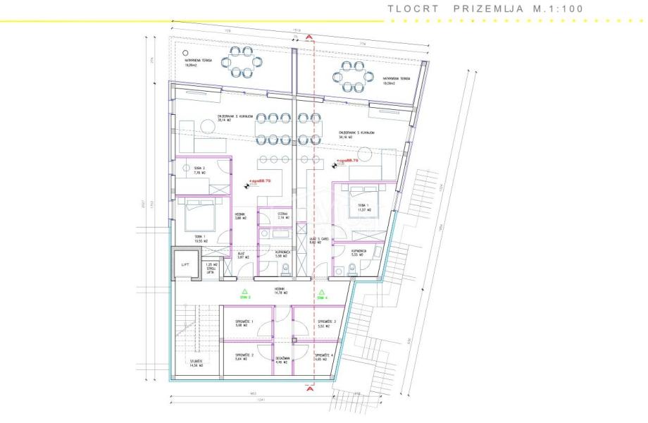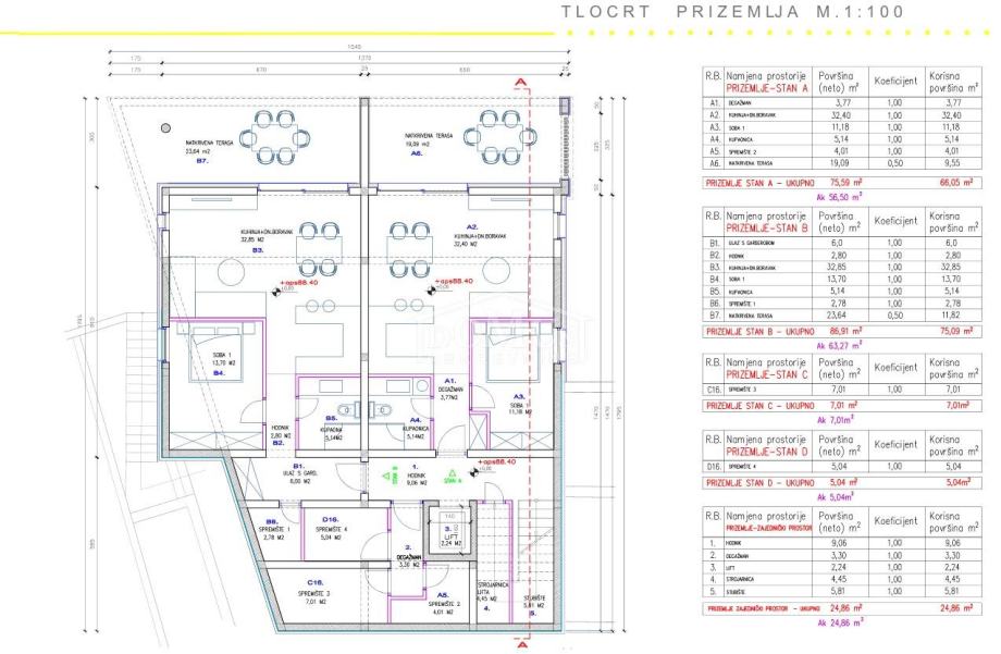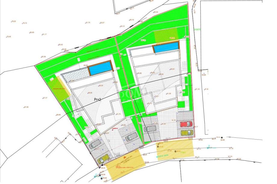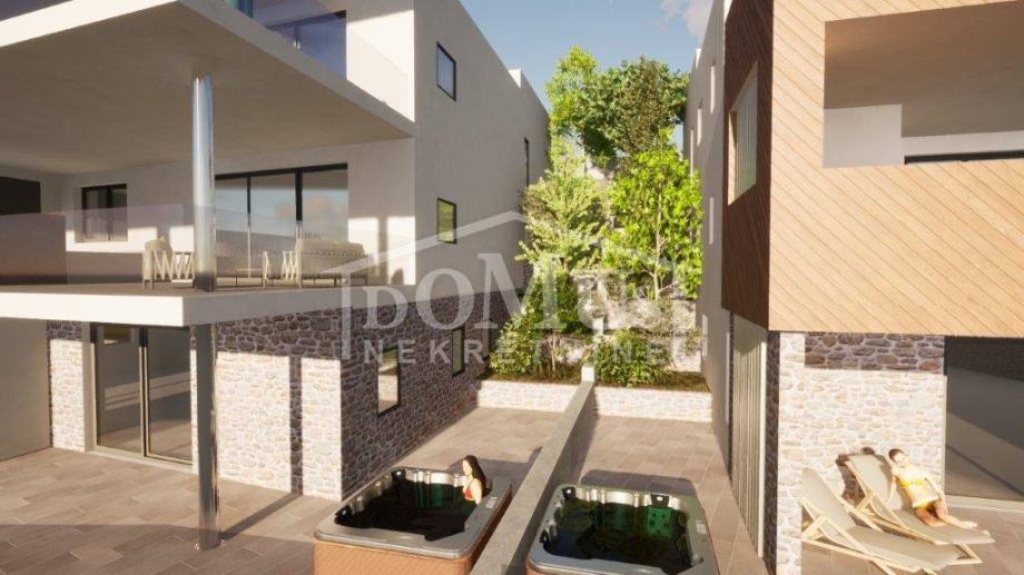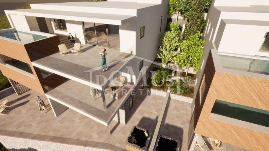 Šibeniku, s panoramskim pogledom na more i grad, građevinsko zemljište površine 1.463m2. Zemljište se nalazi uz asfaltnu cestu, nije ograđeno, ima jaki nagib prema sjeverozapadnoj strani, sa zemljišta se pruža pogled na more. Za građevinsko zemljište je izrađena projektna dokumentacija i pribavljena pravomoćna građevinska dozvola, za buduću gradnju 2 višestambene zgrade, svaka zgrada s 4 stambene jedinice, ukupno 8 stambenih jedinica, katnost svake zgrade je P+1+2, a ukupna površina zgrada bi iznosila 980m2. Zemljište je pravokutnog oblika dužina uz prilazni put cca. 32m, a širina cca. 34m. Kompletna infrastruktura je neposredno uz zemljište.