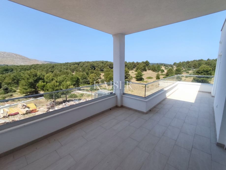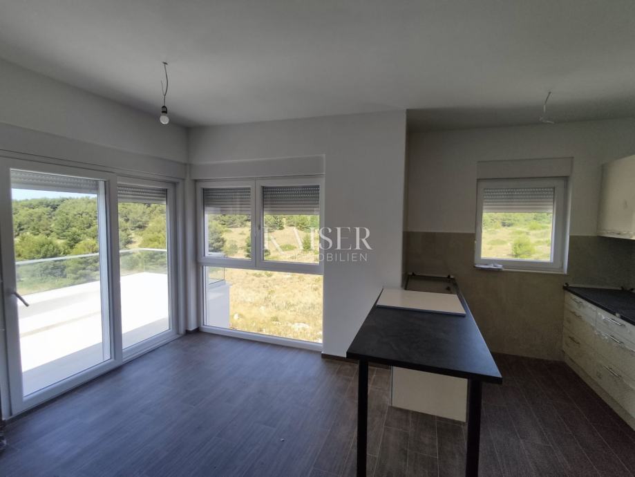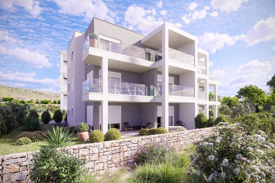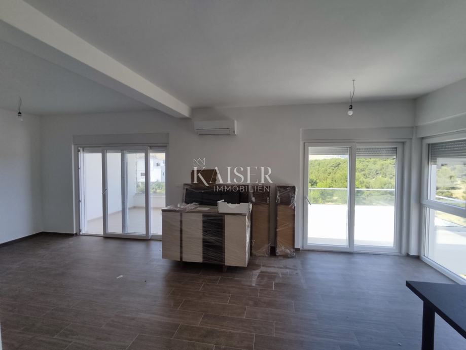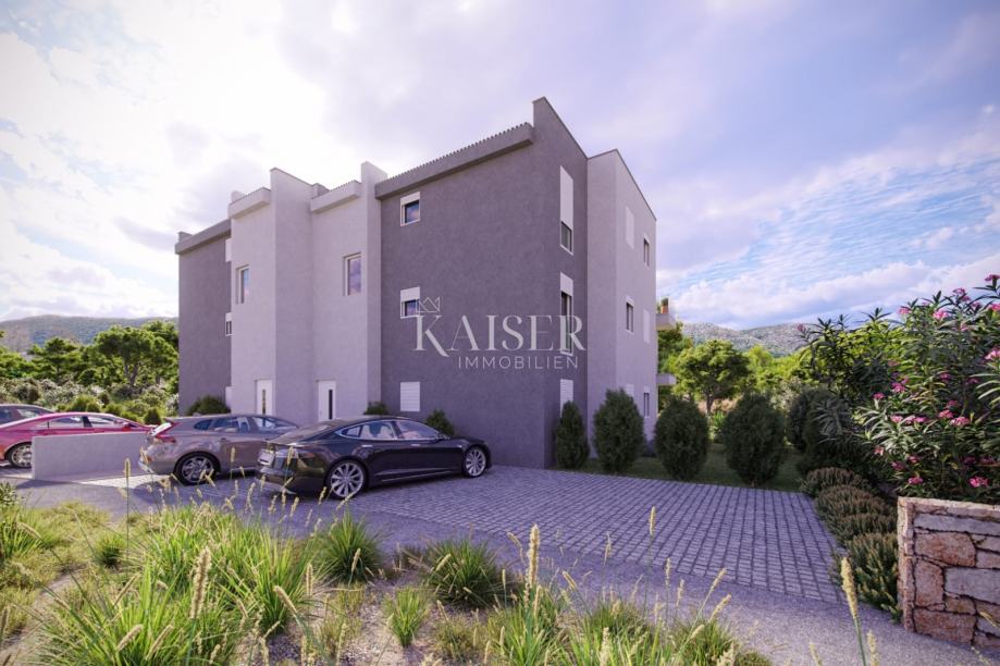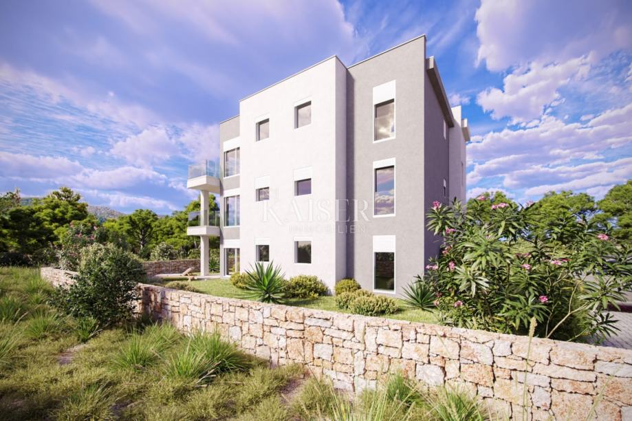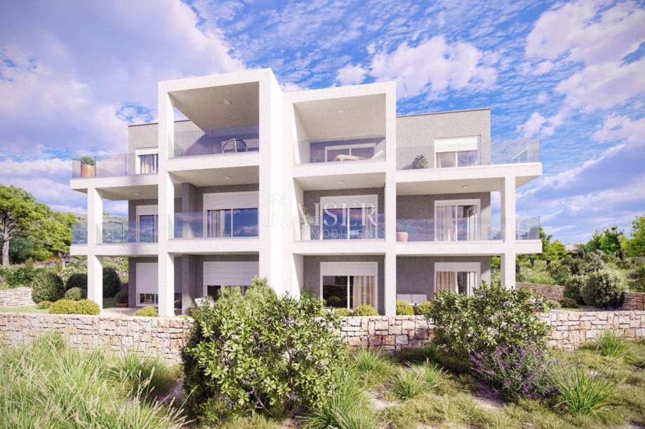 Kaiser Immobilien s ponosom predstavlja jedinstveni penthouse apartman smješten na drugom, ujedno i zadnjem katu moderne stambene zgrade u izgradnji. Ova luksuzna novogradnja nalazi se na izvanrednoj lokaciji, u pitoresknoj uvali s kristalno čistim morem, nudeći savršen spoj suvremene arhitekture i netaknute prirode.