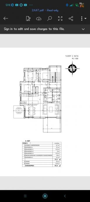 Apartman ukupne stambene površine 97,4 m² dizajniran je kako bi pružio maksimalnu udobnost i funkcionalnost.
