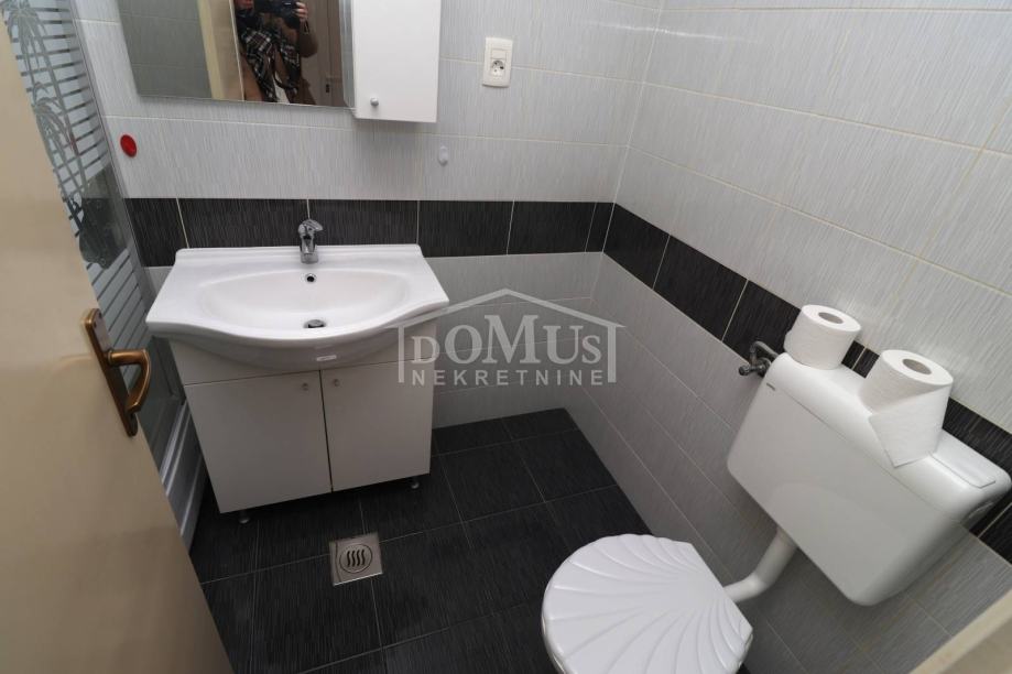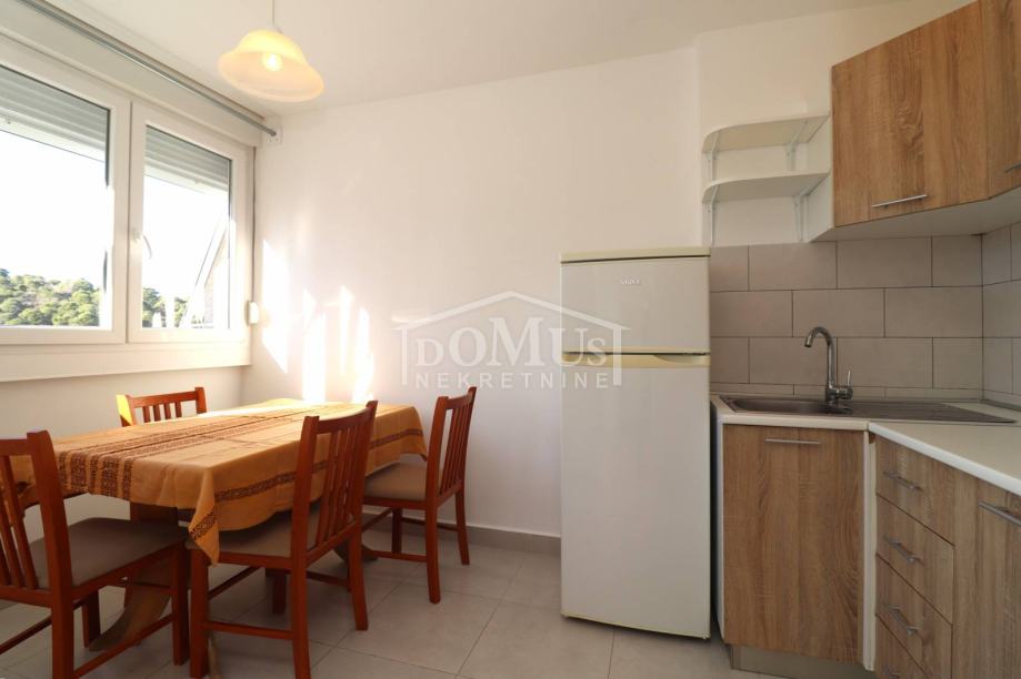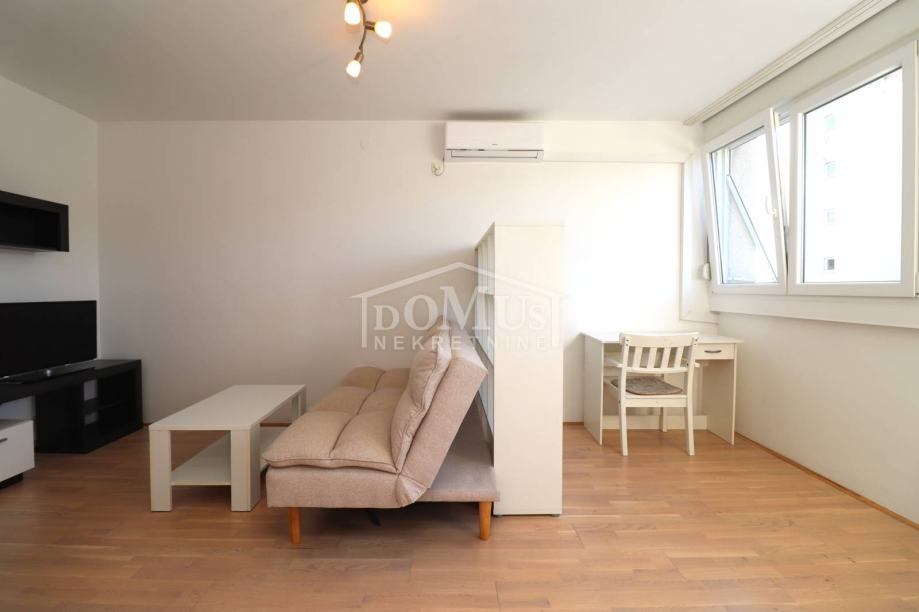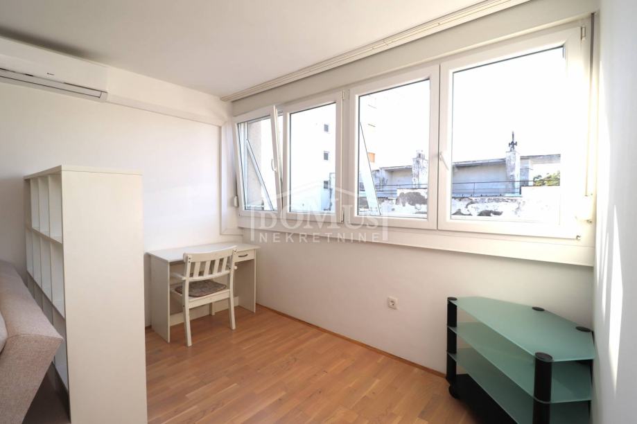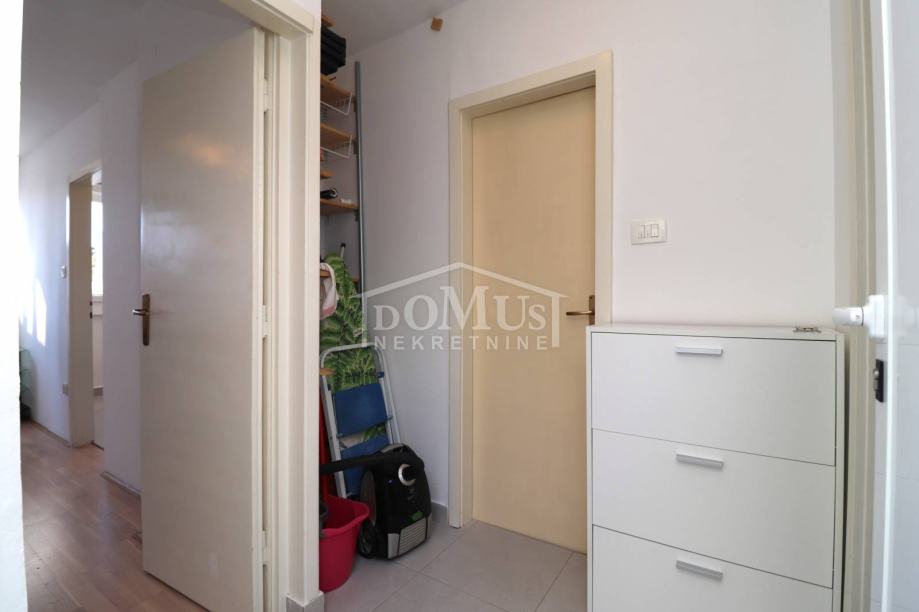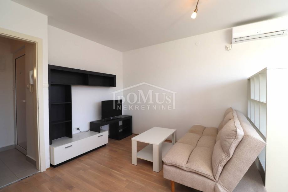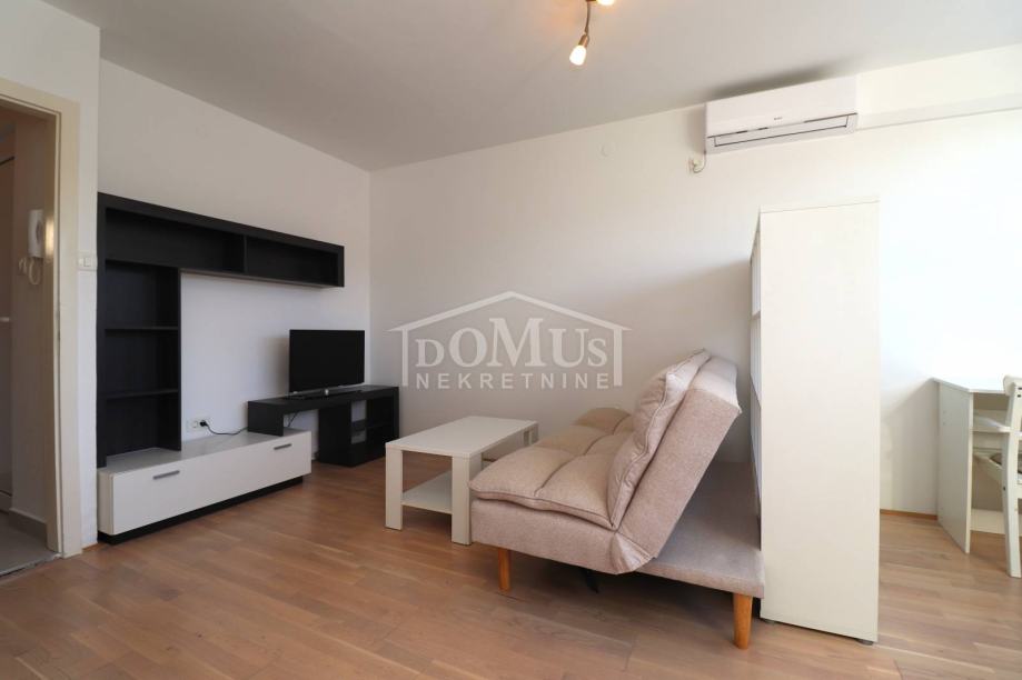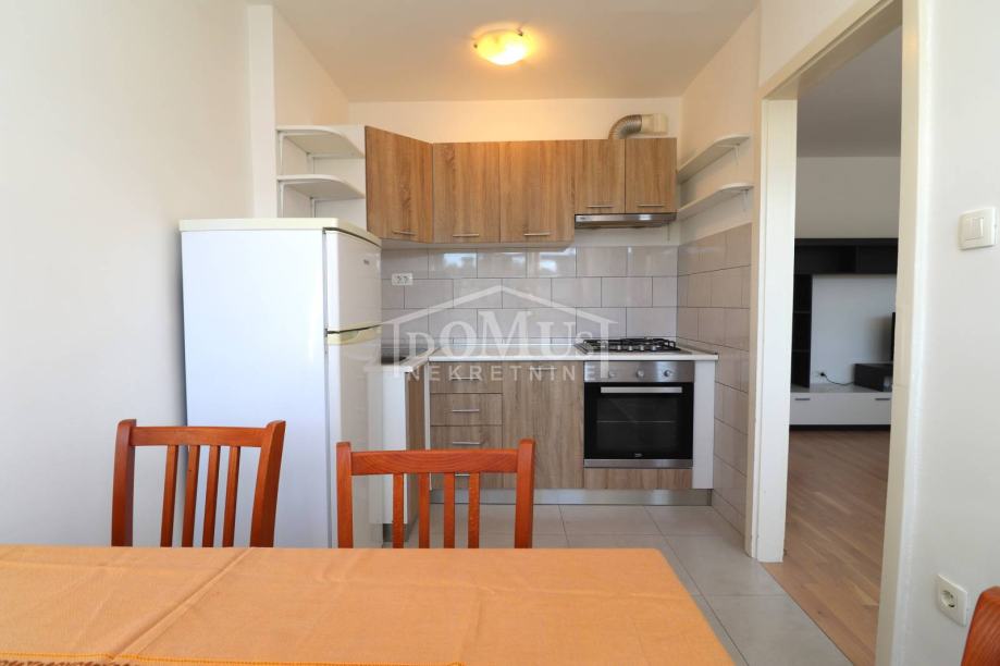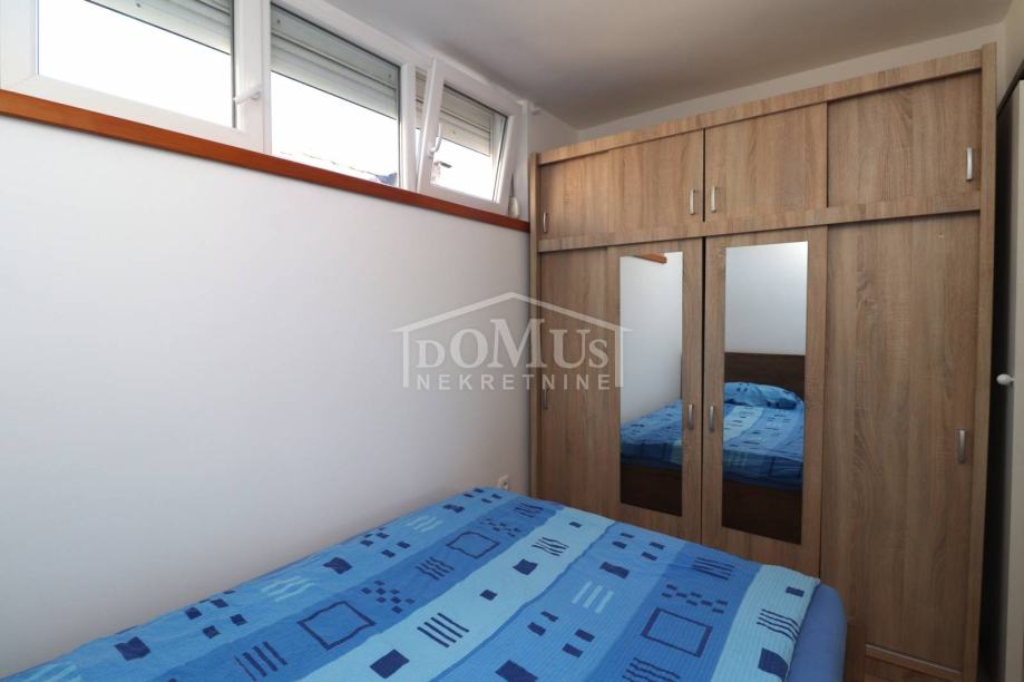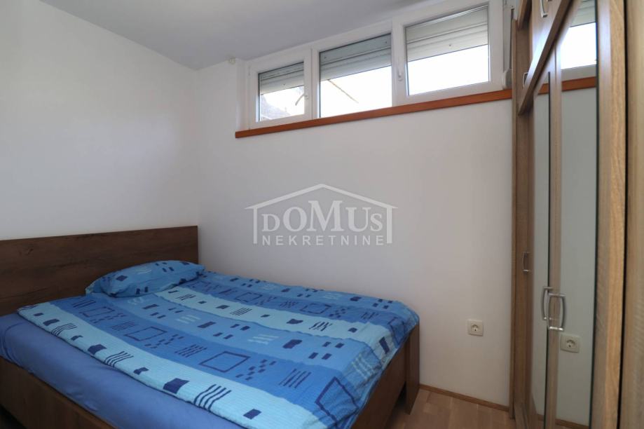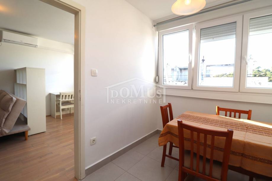 Na lijepoj lokaciji, u neposrednoj blizini škole, trgovine, sportskih sadržaja, javnog prijevoza kao i svih ostalih bitnih sadržaja za život, nalazi se namješten jednosoban stan stambene površine 38 m2. Stan se nalazi na zadnjoj, 5. etaži stambene zgrade. Stan je položen na jugozapadnu stranu, a sastoji se od hodnika, kuhinje sa blagovaonom, dnevnog boravka, jedne spavaće sobe i kupaonice. Stan je renoviran 2017.g., postavljena nova hidroizolacija na krovu 2024. g. Stanu pripada i drvarnica u podrumu. Prostor za parking je na javnoj površini ispred zgrade. Stan je udaljen od centra grada 1 km, od mora 1,5 km, a od gradske plaže Banj 2,5 km.