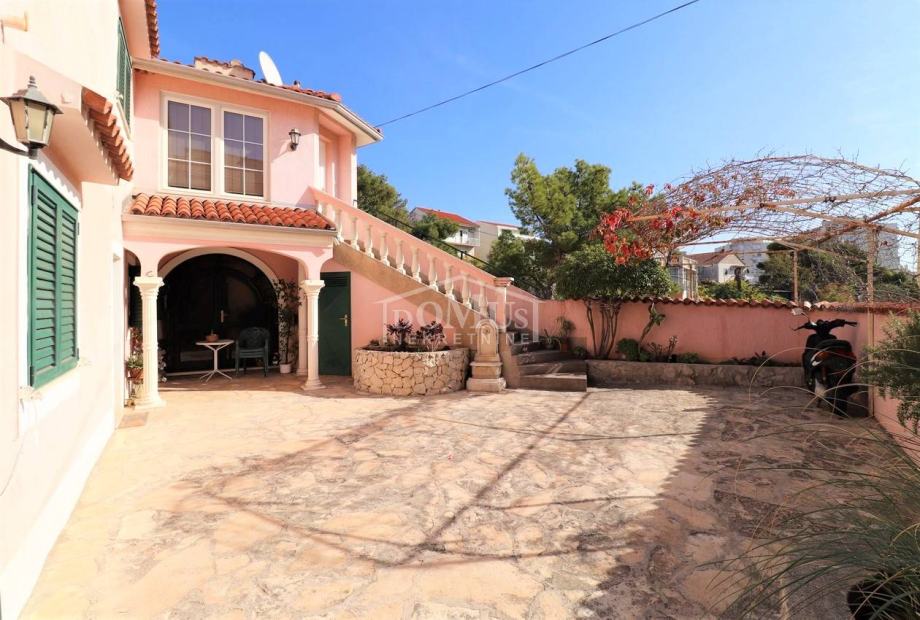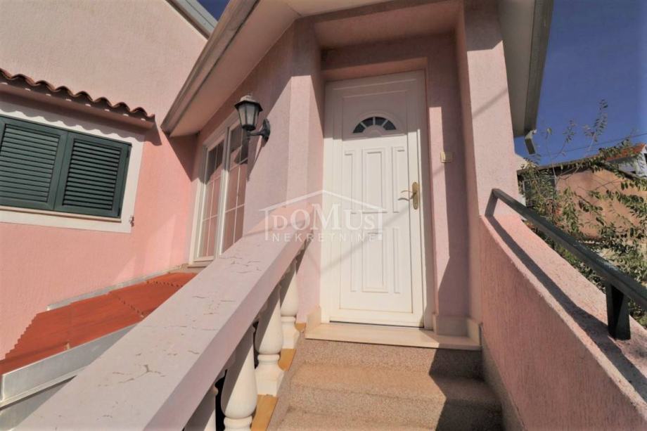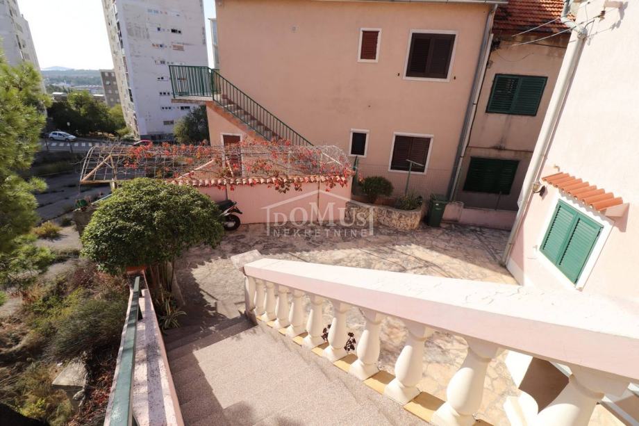 Šibenik – Križ, dvojna kuća kompletno renovirana sa 2 odvojene stambene jedinice (prizemlje i kat), ukupne stambene površine 130 m2 na parceli površine 108 m2. Prizemlje kuće se sastoji od jedne spavaće sobe, komfornog dnevnog boravka, kuhinje i blagovaone, hodnika, kupaonice i spremišta. Vanjske stepenice vode na 1. kat gdje se nalazi stan koji se sastoji od hodnika, dvije spavaće sobe, kupaonice, kuhinje sa blagovaonom, dnevnog boravka i malog balkona. Kuća se prodaje bez namještaja, svaki stan ima klima uređaj. Kuća ima uređeno i ograđeno popločano dvorište 60 m2 te se ispod vanjskih stepenica nalazi malo spremište. Parking na javnoj površini. Udaljenost do centra je 1500m, do mora 1000m. Nekretnina nema uporabnu dozvolu.