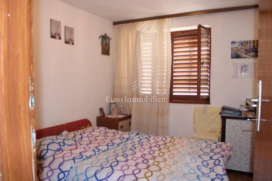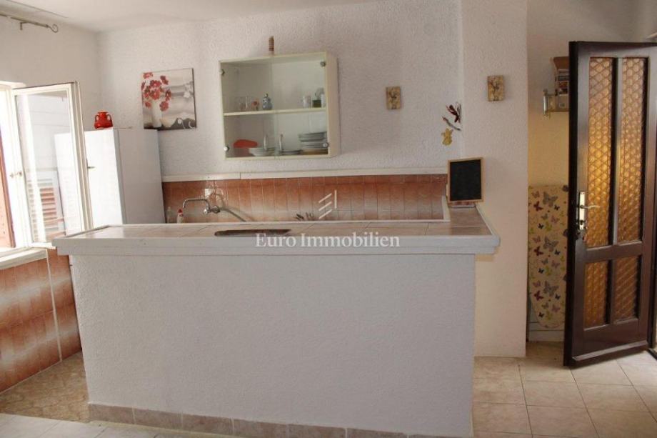 Kuća površine 162 m2 se sastoji od dva stana, te joj je potrebna renovacija. Jedan stan je dvosoban, dok je drugi stan jednosoban. U prizemlju se nalazi konoba i garaža.