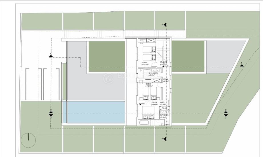 Krov prizemlja planiran je kao zeleni krov dok je neprohodni krov prvog kata završen TPO membranom zaštićenom slojem šljunka (oblutaka).