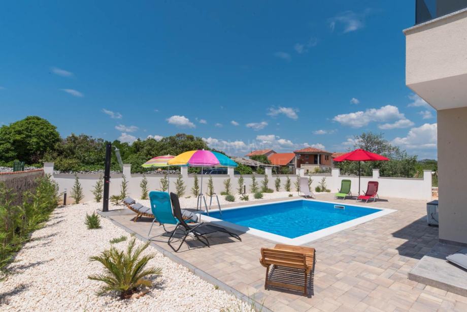Prodaje se nova luksuzna kuća s bazenom na mirnoj lokaciji u Martinskoj pored Šibenika. Kuća je u naravi dvojni objekt i prostire se na dvije etaže: prizemlja i kata, dok u dvorišnom dijelu se nalazi lijepo uređena okućnica i bazen. Kuća ima odličan raspored prostorija te je projektirana na način da dvorišni dio svake kuće ima veliku okućnicu te potpunu intimu i privatnost. Svaki detalj ovih kuća je brižno osmišljen i dizajniran kako bi budući vlasnici imali potpuni luksuz i komfor za odmor ili stanovanje tijekom cijele godine.