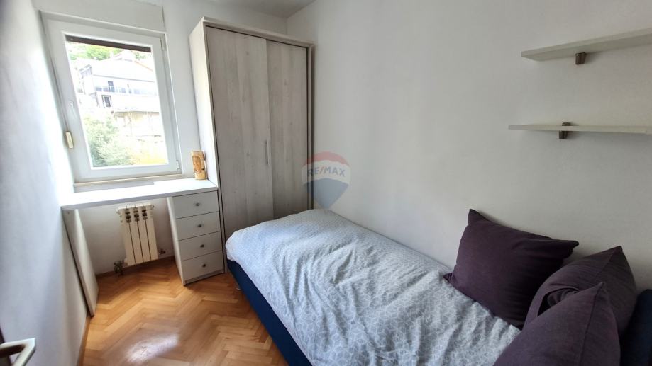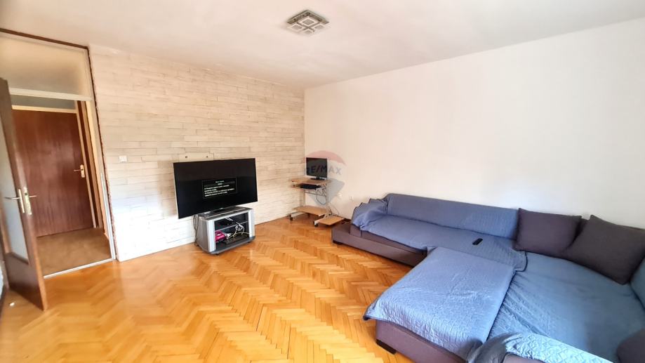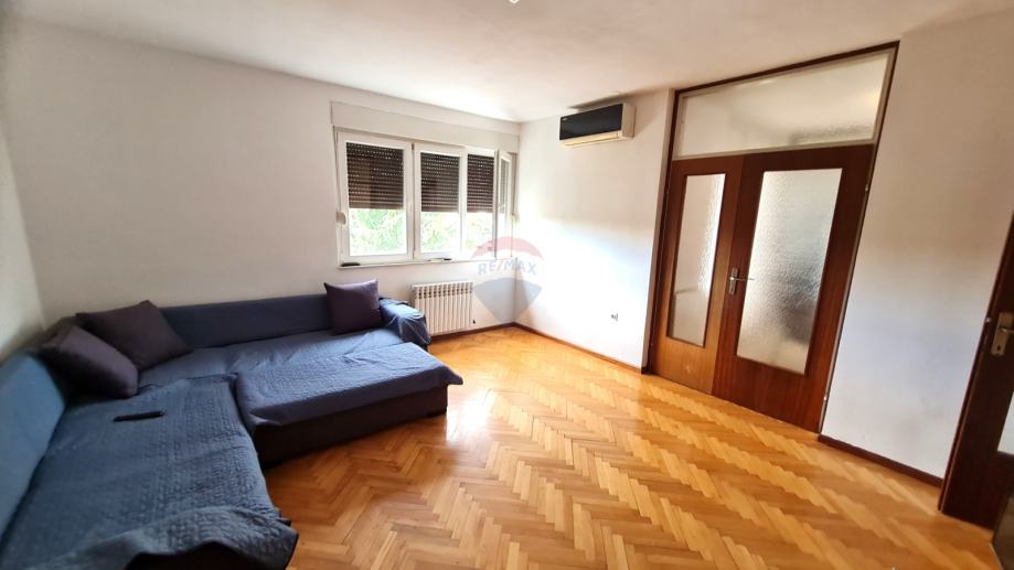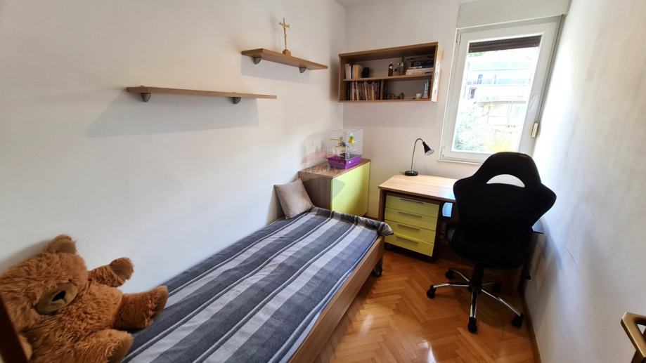 Stan se sastoji od 4 sobe, 3 spavaće i jedne dnevne sobe, kuhinje s blagovaonicom, kupaonice i odvojenog wc-a, 2 hodnika, lođe i drvarnice/šupe u podrumu, te zajedničke praonice/sušione.