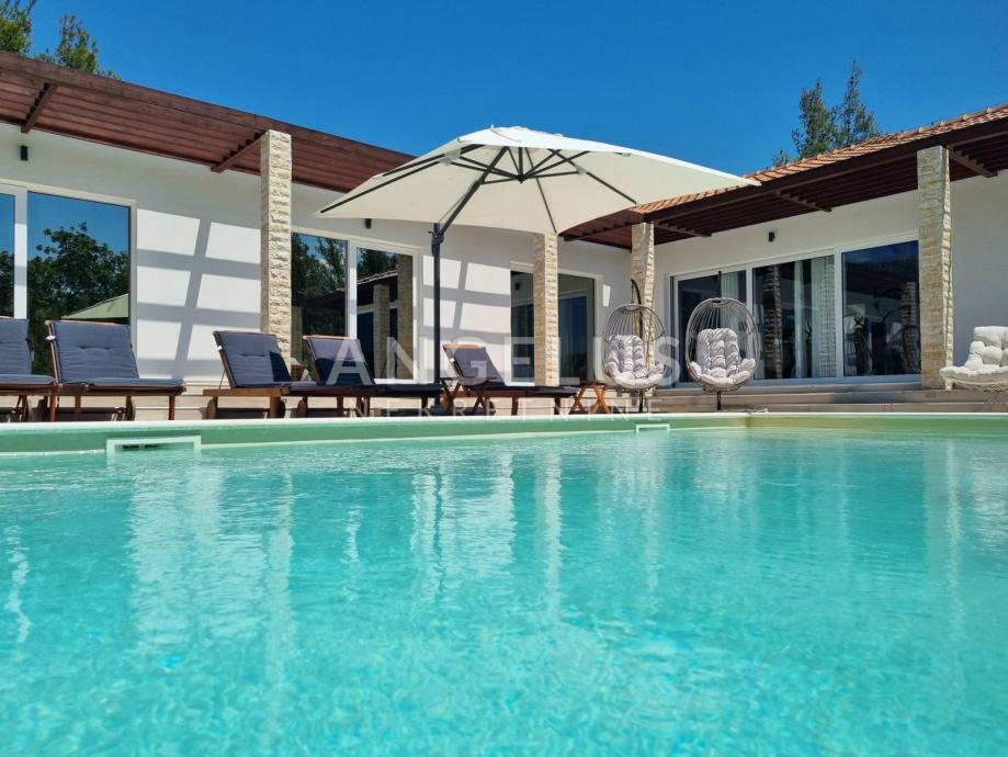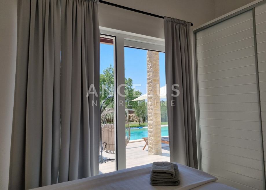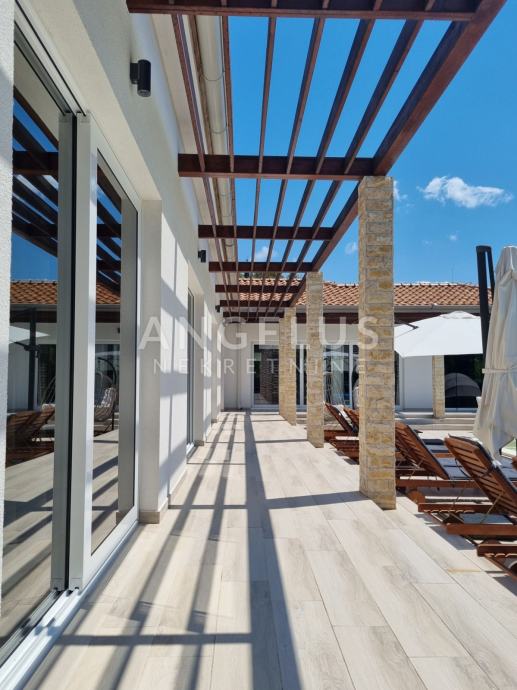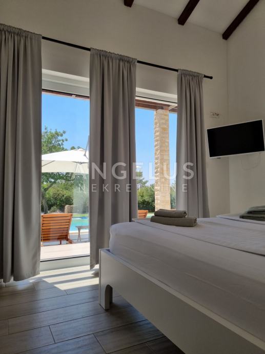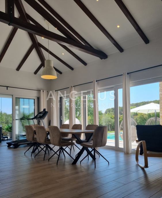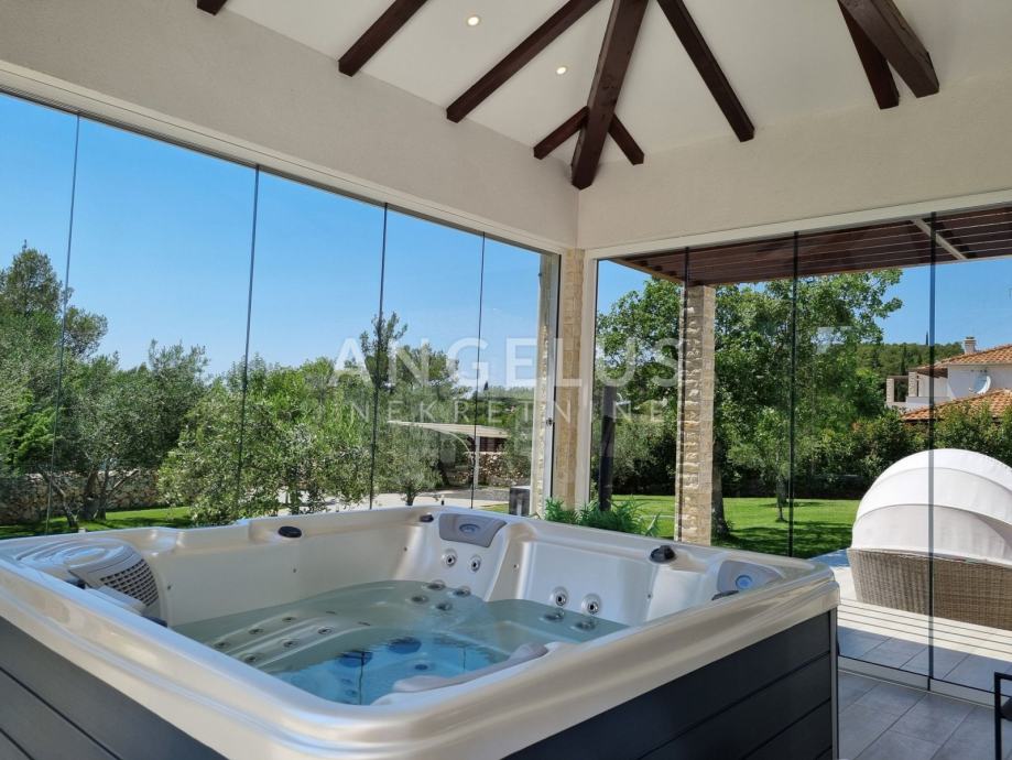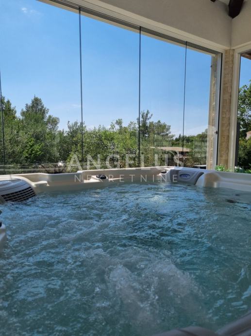 Vila je u potpunosti ograđena kamenim zidovima, a cijela okućnica je prekrasno uređena. Izuzetno mirna i tiha lokacija koja se nalazi na granici građevinskog područja odakle su moguće prekrasne šetnje prirodom i vožnja biciklom. nekretnina je idealna za bavljenje turističkim najmom ili za ugodan obiteljski život zbog prekrasnog okruženja za djecu i kućne ljubimce.