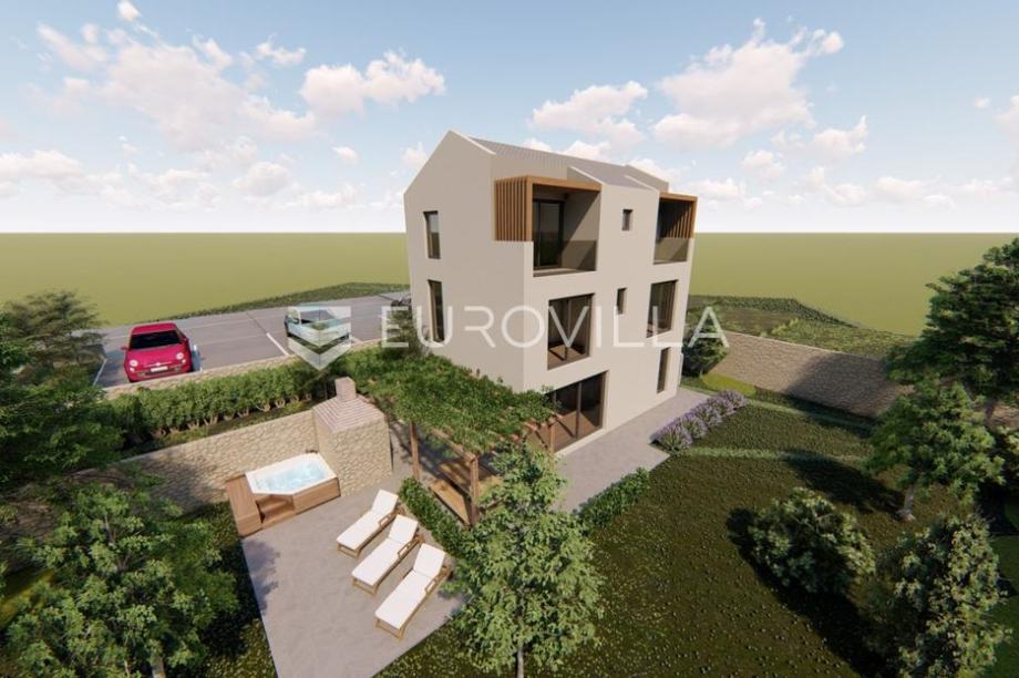 Zaton, building plot of 695 m2 with a valid building permit for the construction of a four-bedroom villa with a living area of 200 m2. The villa was designed as a combination of traditional Dalmatian construction through elements of stone walls and facade in combination with a modern way of life -...