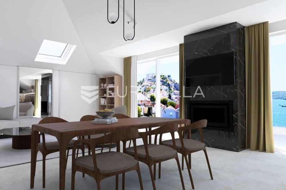 Šibenik, plaža Banj, prekrasan prekrasan penthouse na samoj plaži, NKP 138,82 m². Stan se nalazi na trećem katu potpuno renovirane zgrade s liftom, prvi red do mora. Pripada mu jedno parkirno mjesto, te je stanarima dostupan i veliki javni parking. Površina zatvorenog prostora je 131,08 m², a površina terase je 20,07 m².Stan se sastoji od dnevnog boravka s kuhinjom i blagovaonicom, tri spavaće sobe od kojih jedna ima privatnu kupaonicu i walk-in ormar, jedne zasebne kupaonice, te galerije koja može biti spavaća soba ili prenamijenjena u nešto drugo. Iz dnevnog boravka izlazi se na veliku natkrivenu terasu s pogledom na more i na stari grad. Svaka prostorija ima klima uređaj, te stan ima ugrađeno i podno grijanje na dizalicu topline. Kupac ima mogućnost odabira pločica/parketa.Stan se nalazi na odličnoj lokaciji, odmah do plaže Banj. Svi bitni sadržaji su u blizini stana.Za sve ostale informacije stojimo na raspolaganju....