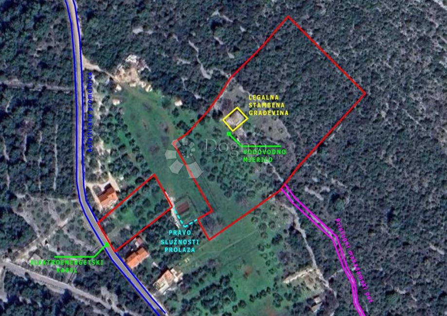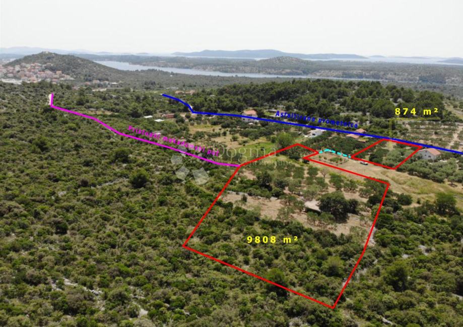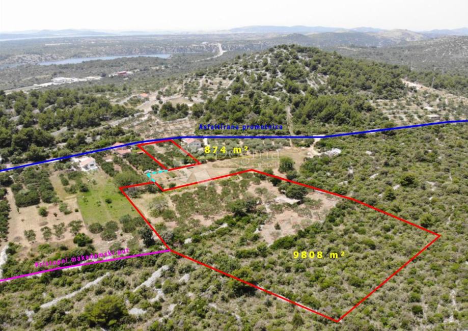 Prodaje se zemljište ukupne površine 10.682 m², smješteno u neposrednoj blizini Grada Šibenika. Na zemljištu se nalazi legalna stambena građevina za potpunu rekonstrukciju, s mogućnošću dobivanja korisne stambene površine do 100 m² i podrumom od 30 m².