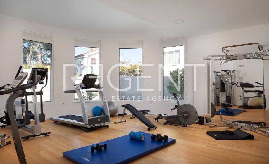U mirnom dijelu malog mjesta Zablaće nedaleko Šibenika smjestila se ova prekrasna vila uz more, okružena šumom, za odmor duše i tijela. Vila je Izgrađena 2014. godine, prostire se na 1000 m2 unutarnjeg prostora, na zemljištu veličine 2600 m2. Udaljena je samo 5 km od Šibenika, 55 km od aerodroma u Kaštelima odnosno aerodroma u Zemuniku. Svojim položajem u samom centru Jadrana, omogućava brzi pristup nacionalnom parku Kornati(20 Nm) i Nacionalnom parku Krka(20 km). Šibenik je prekrasan preko 900 godina stari grad sa 4 novouređene tvrđave i nadaleko poznatom katedralom sv. Jakova. Okolica Šibenika obiluje sa arheološkim nalazištima, a i velikim brojem ugostiteljskih sadržaja.PODRUM– sala(120m2) sa biljarom, stolnim tenisom, pikadom, jukeboxom, kaminom, vinotekom i velikim stolom– strojarnica bazena, glavna strojarnica, sanitarni čvor– skladište za razne rekvizite za more– liftPRIZEMLJE– kuhinja sa svim potrebnim uređajima i smočnicom– blagovaonica i dnevni boravak sa kaminom– lift– praonica i spremište rublja– sanitarni čvor– garaža za tri vozila– fitness(45m2)– tuš i wc– unutarnji bazen, jacuzzi, sauna i tuš(ukupno 70 m2)– prostorija za masažu– natkrita ljetna kuhinja sa roštiljem– vanjski bazen sa tušem(55m2)– dvorište sa parkingom za 6 automobilaKAT – dio za domaćina– vlasnička spavaća soba sa velikom garderobom, kupaonicom (tuš, jacuzzi i odvojeni wc) i balkonom( ukupno oko 60 m2)– 3 dvokrevetne sobe sa kupaonicom– liftKAT – dio za goste– apartman sa kuhinjom, dnevnim boravkom i dvije dvokrevetne sobe– kupaonica + wc– balkon sa pogledom na more– apartman za domaćicu sa kupaonicom + wcOkoliš je uređen, a pri izlazu iz bazena nalazi se tuš sa toplom i hladnom vodom. Uz podrum nalazi se dio košarkaškog terena sa postavljenim košem. Uz parkiralište se nalazi vrt (oko 100m2).Grijanje i hlađenje je preko solarnih kolektora i DAIKIN sustava za hlađenje i grijanje.Sigurnost: alarmni sustav i 23 kamere, sva stakla su protuprovalna, a ugrađen je i sefNa raspolaganju su bicikli i rekviziti za more. Također, ispred kuće je bova za privez čamca.Za više informacija, kontaktirajte našeg agenta na brojeve telefona: