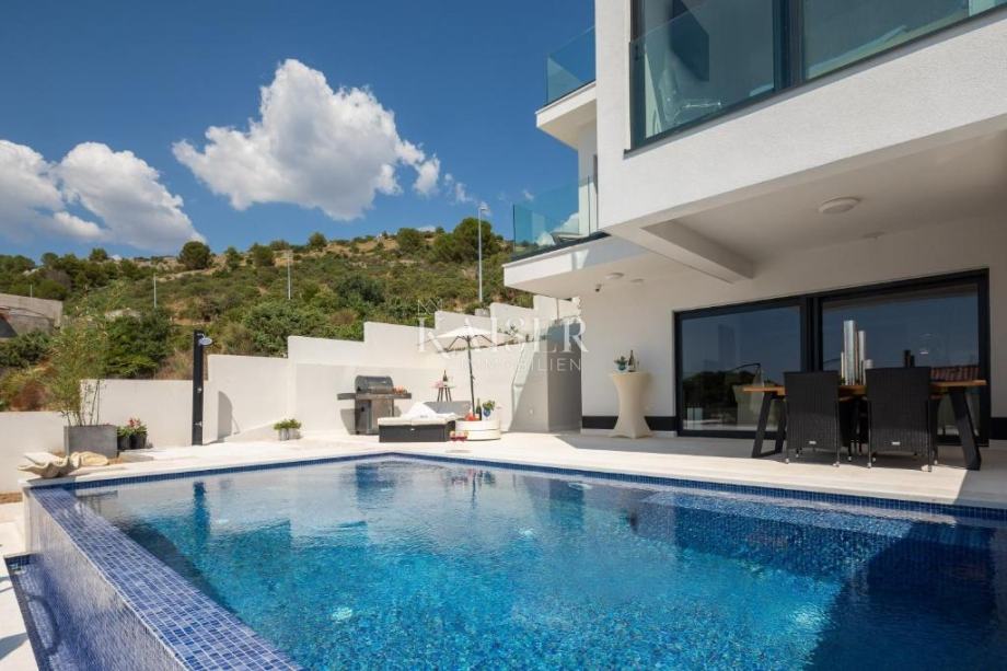 Rogoznica – Moderna luksuzna vila s panoramskim pogledom na more, infinity bazenom i odvojenom gornjom jedinicom