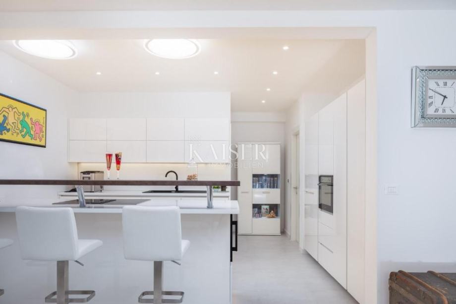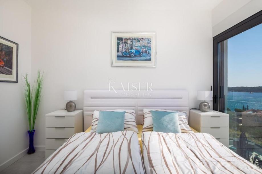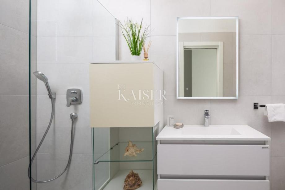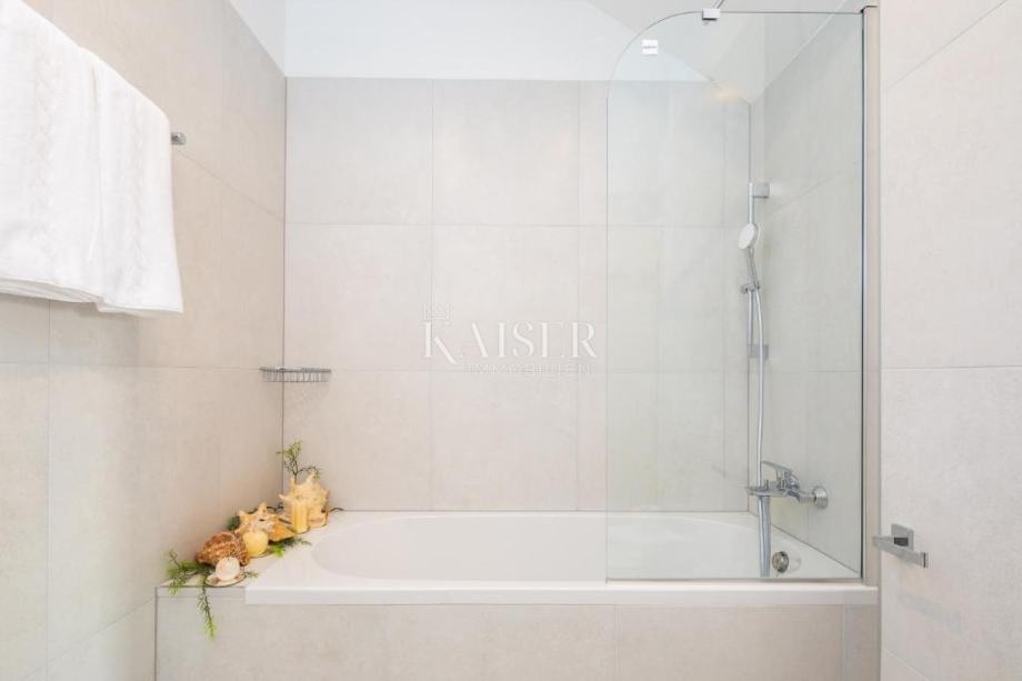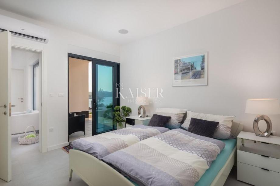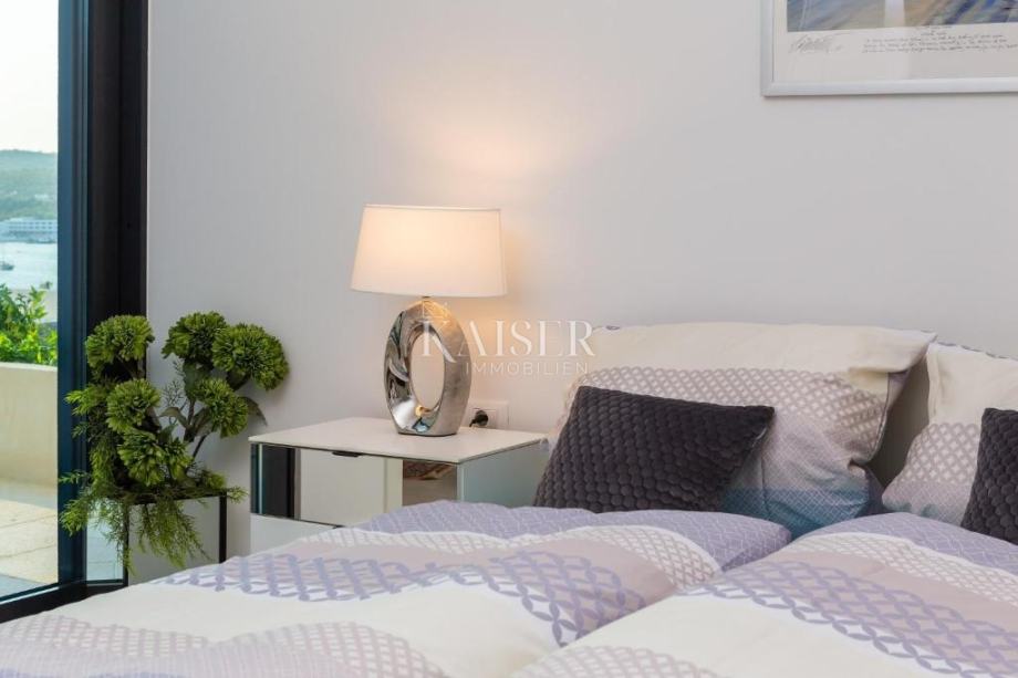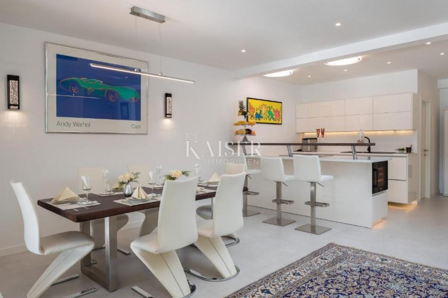 Kaiser Immobilien s ponosom predstavlja ekskluzivnu luksuznu vilu, smještenu na mirnoj lokaciji s otvorenim pogledom na more, svega 90 metara od plaže. Nekretnina se nalazi na parceli površine 400 m², a ukupna stambena površina iznosi cca 300 m², raspoređena na tri etaže. Vila je projektirana s naglaskom na luksuz, funkcionalnost i privatnost.