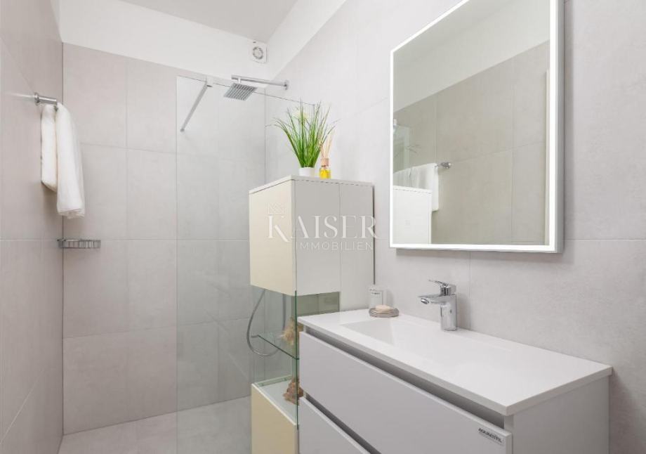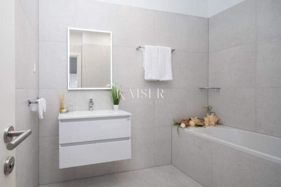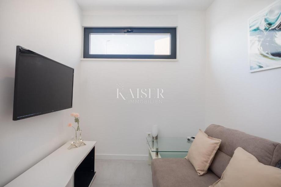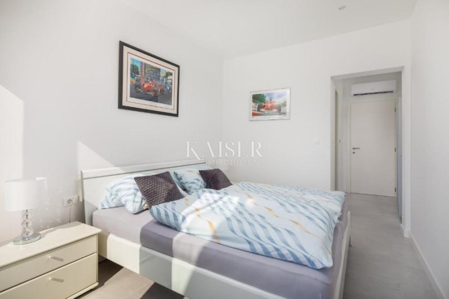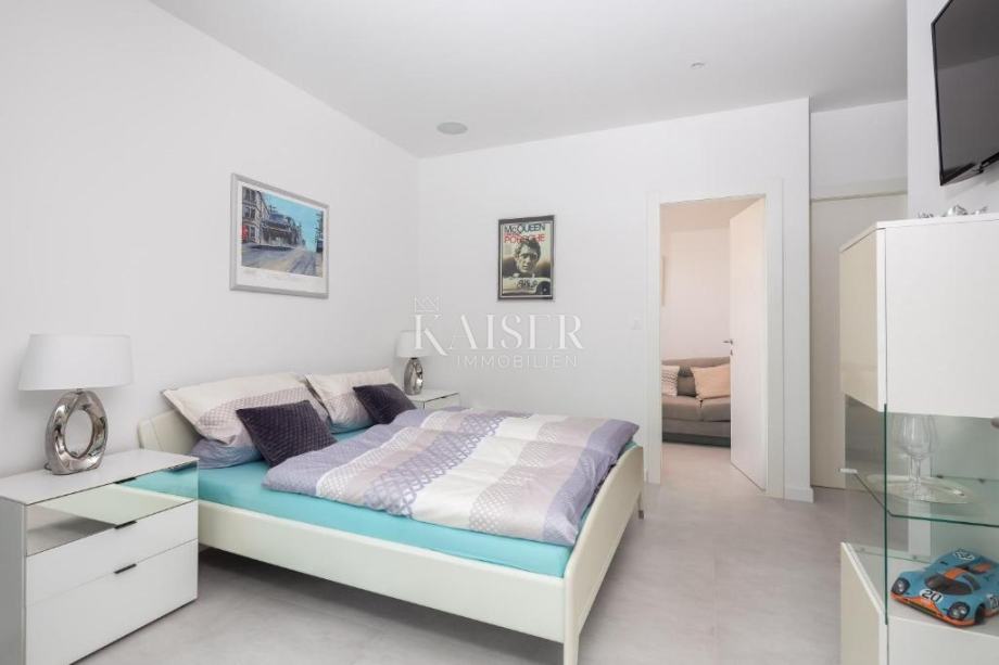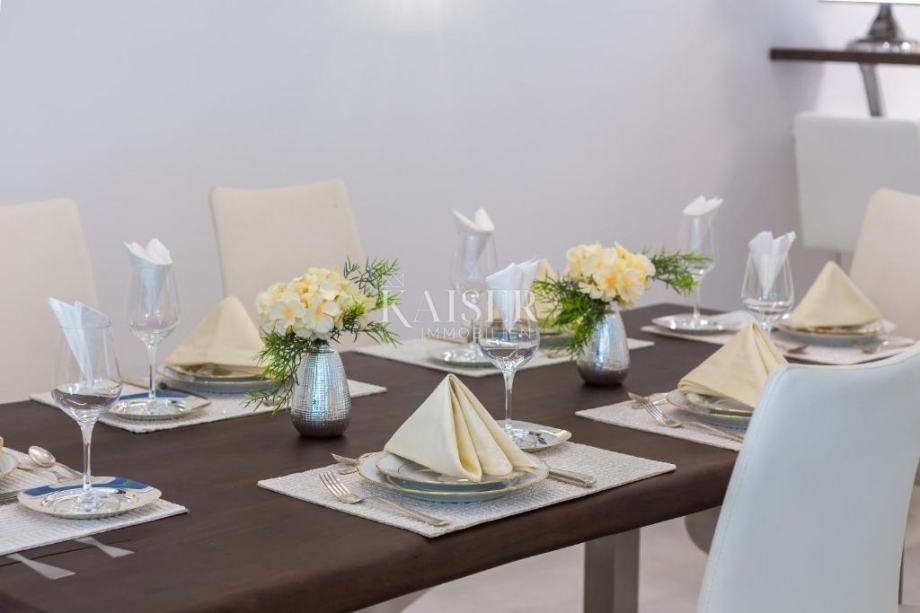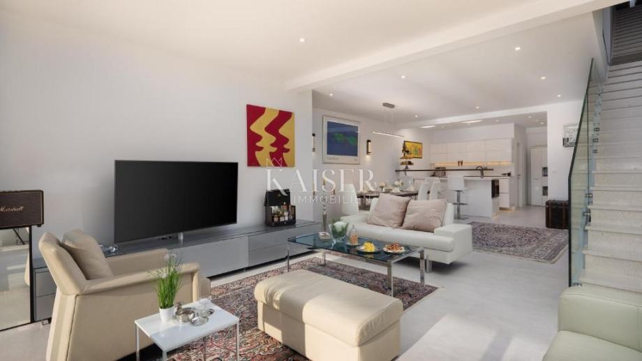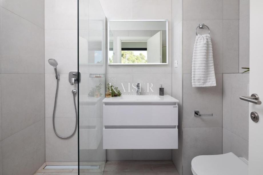 Kaiser Immobilien s ponosom predstavlja ekskluzivnu luksuznu vilu, smještenu na mirnoj lokaciji s otvorenim pogledom na more, svega 90 metara od plaže. Nekretnina se nalazi na parceli površine 400 m², a ukupna stambena površina iznosi cca 300 m², raspoređena na tri etaže. Vila je projektirana s naglaskom na luksuz, funkcionalnost i privatnost.