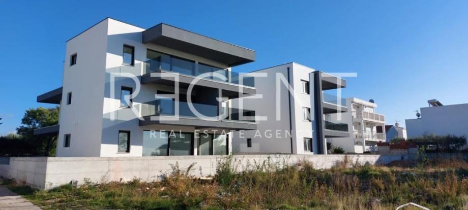 Posredujemo pri prodaji luksuznog penthousea u novogradnji koji se nalazi u Rogoznici, nedaleko od prekrasnog Šibenika. Lokacija nudi blizinu svih potrebnih sadržaja za svakodnevni praktičan život kao što su trgovine, kafići, restorani i plaže.Stan je smješten na vrhu zgrade u novogradnji, a obuhvaća pažljivo osmišljeni životni prostor koji pruža eleganciju i udobnost na svakom koraku.Sastoji se od prostranog open spacea površine 39,90m2 koji sadrži kuhinju, blagovaonicu i dnevni boravak, prvog ulaznog prostora površine 7,45m2, drugog ulaznog prostora površine 2,75m2, prve sobe površine 17,10m2, druge sobe površine 13,75m2, treće sobe površine 12,15m2 kupaonice površine 5,95m2 i druge kupaonice površine 4,90m2, a sadrži i polunatkriveni balkon površine 8,30m2.Zbog pozicije na vrhu stambene zgrade ovaj stan pruža prekrasan pogled na more i obalu te prirodu koja ga okružuje, pa tako daje priliku budućem vlasniku za investiciju u turističku djelatnost u neposrednoj blizini mora i sadržaja.Za više informacija, kontaktirajte našeg agenta na brojeve telefona: