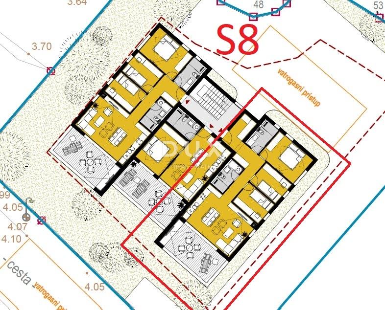 DUX predstavlja modernu novogradnju smještenu na izvrsnoj mikrolokaciji u Srimi, svega 300 metara od mora i predivnih plaža. Srima je mirno i uređeno naselje nadomak Vodica, idealno za obiteljski život i odmor, a ujedno dovoljno blizu svim potrebnim sadržajima i gradskom životu.