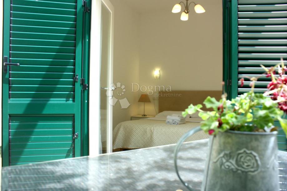S obzirom na lokaciju i popularnost, ovaj objekt je u funkciji turističkog najma tijekom cijele godine. Podijeljen je na 4 zasebne funkcionalne jedinice i donosi vlasniku prihode. Malim zahvatom stan se može vratiti u prvobitno stanje tj. u vrlo komforan semi-penthouse u jednoj cjelini.