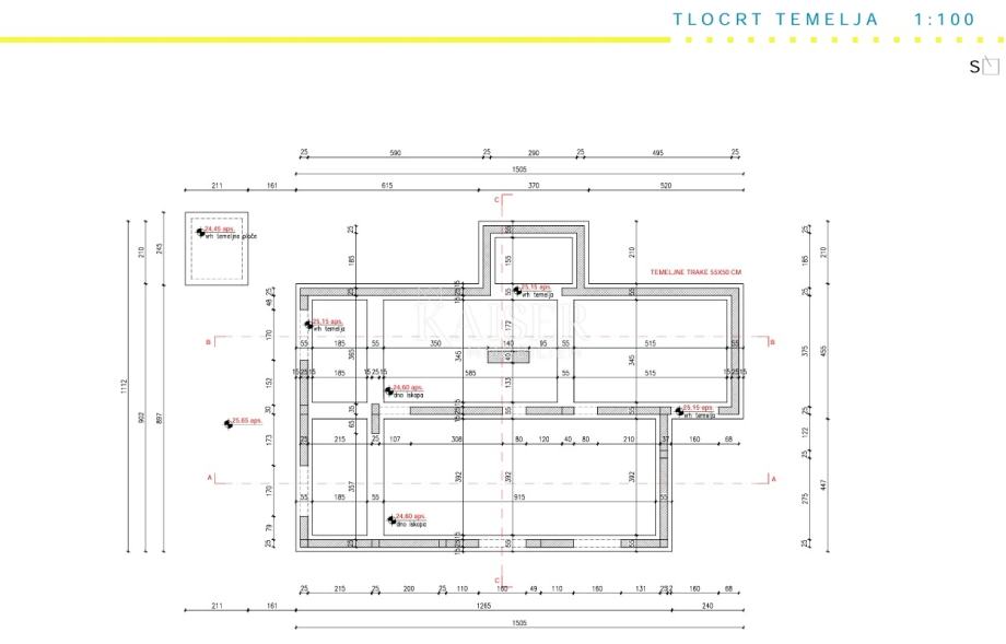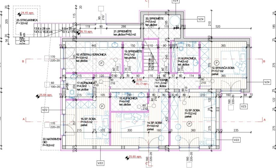 Konstrukcija: Armiranobetonski sustav s termo blok opekom debljine 25 cm.