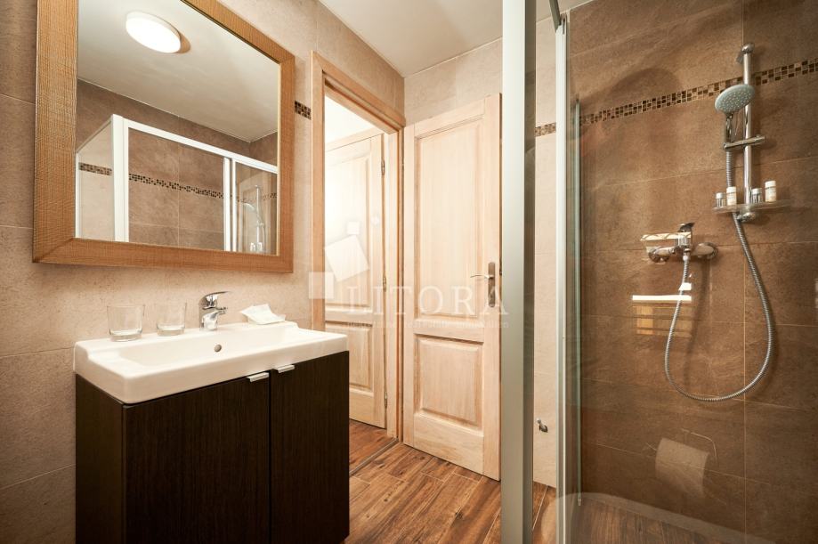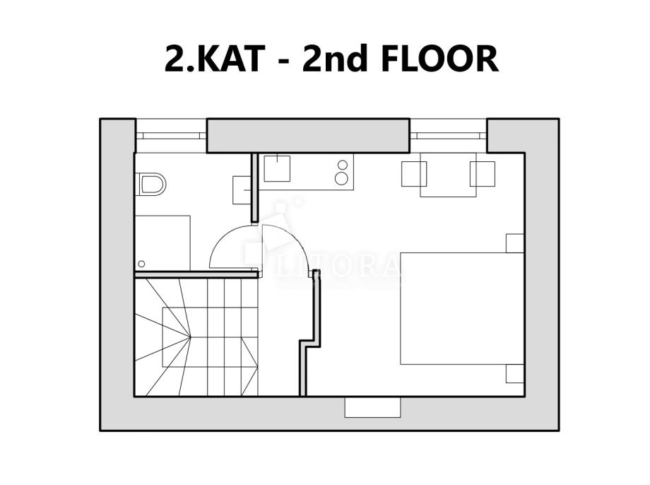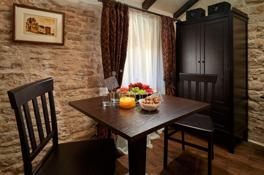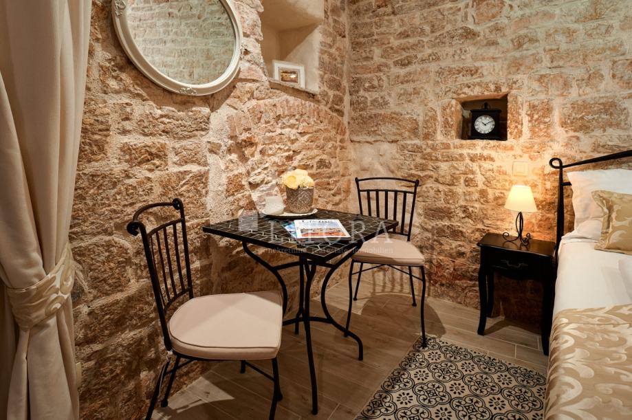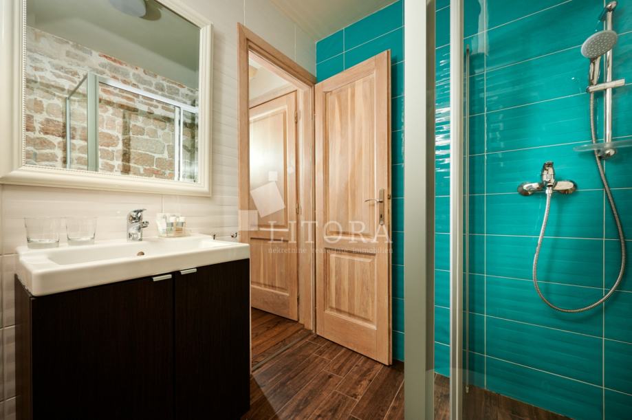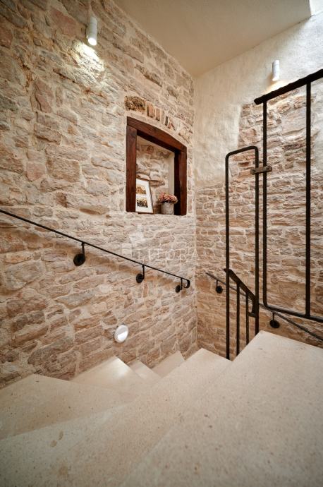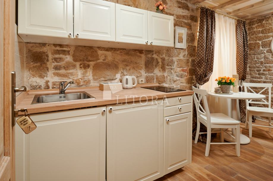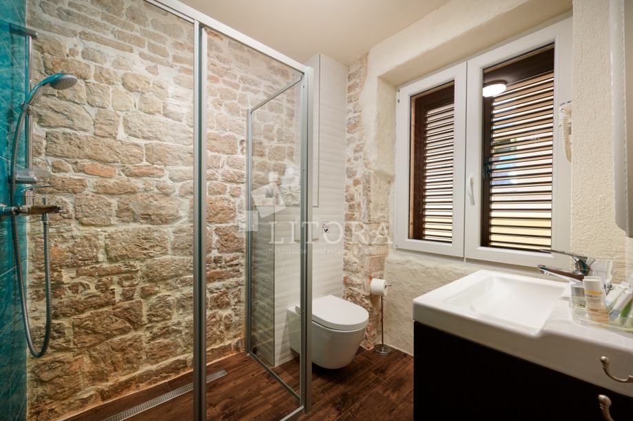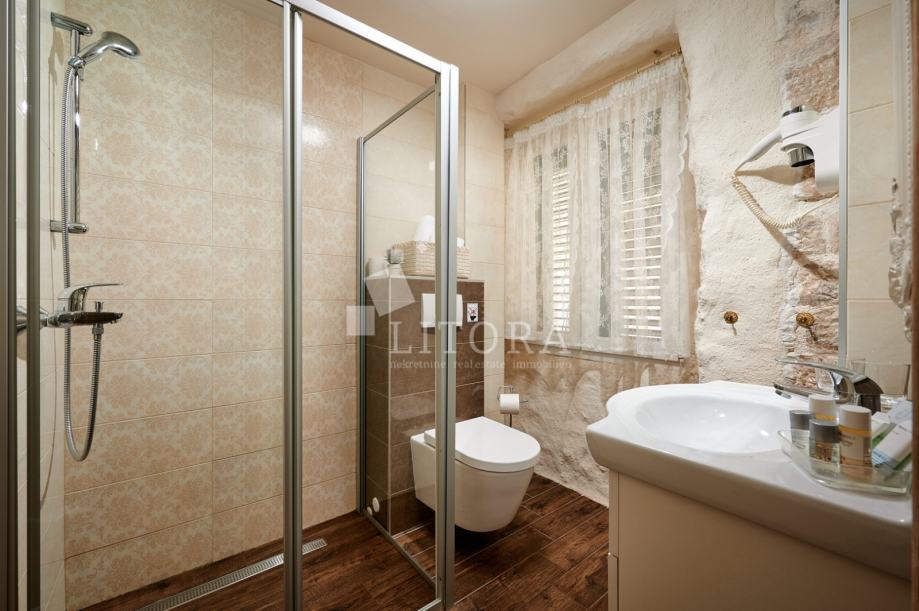 U srcu šibenske stare gradske jezgre, u mirnoj pješačkoj zoni, smještena je potpuno renovirana kamena kuća na četiri etaže, ukupne stambene površine 108 m². Nekretnina je preuređena 2018. godine i podijeljena u četiri moderno uređena studio apartmana, od kojih svaki zauzima po jednu etažu. Svaka jedinica sastoji se od dnevno-spavaće sobe s mini kuhinjom te prostrane i suvremeno opremljene kupaonice. Krov je dijelom krovna terasa s pogledom na grad. Pri renovaciji posebna pažnja posvećena je očuvanju autentičnosti i šarma dalmatinske kamene arhitekture. Vanjski zidovi od prirodnog kamena obnovljeni su pjeskarenjem i fugiranjem, dok su interijeri oplemenjeni kvalitetnom PVC stolarijom i drvenom međukatnom konstrukcijom. Kuća je u potpunosti namještena i opremljena, svaka stambena jedinica ima vlastiti klima uređaj, a prodaje se zajedno s kompletnim inventarom, što omogućuje trenutno bavljenje turističkim najmom. Ova nekretnina predstavlja izvanrednu investicijsku priliku u samom srcu Šibenika, na nekoliko koraka od kulturnih znamenitosti, restorana i mediteranskog ugođaja starog grada. Udaljenost od plaže je 1400m.