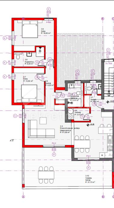 Ovaj luksuzni stan površine 119m2 smješten je na prvom katu moderne stambene zgrade.