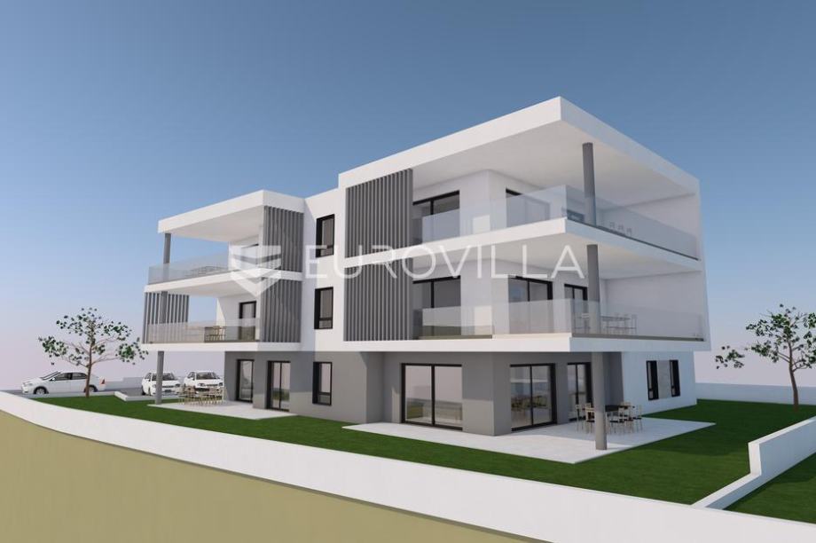 Šibenik, Tribunj, odličan trosoban stan zatvorene površine 105,03 m² u prizemlju moderne zgrade. Pripadaju mu dva parkirna mjesta u dvorištu i 183,50 m² dvorišnog prostora. Ukupno obračunski NKP 152,95 m².Stan se sastoji od prostranog dnevnog boravka s kuhinjom i blagovaonicom, tri spavaće sobe, kupaonice, WC-a, vešeraja, te velike terase površine 49,84 m². U sobama je na podovima laminat i cijeli stan ima podno grijanje. Investitor je pravna osoba, što znači da ste oslobođeni plaćanja poreza na promet nekretninama.Izvrsna mikrolokacija, u blizini centra mjesta i svih bitnih sadržaja. Udaljenost do plaže je 400 metara, a do centra Tribunja 500 metara. Zgrada je trenutno u izgradnji, te je planirani završetak radova do travnja 2026.Za sve ostale informacije stojimo na raspolaganju....