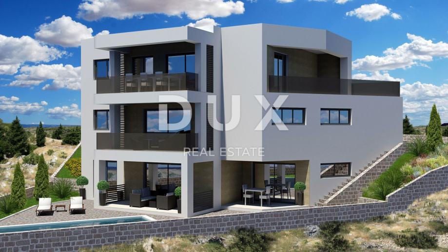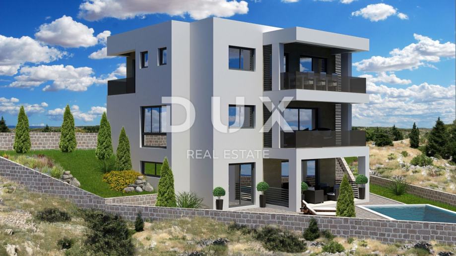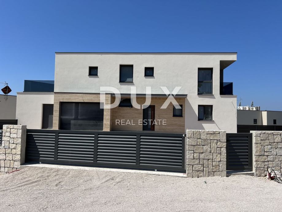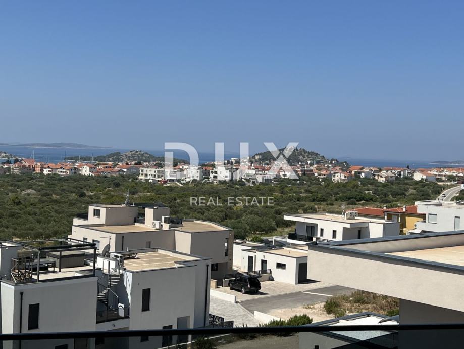 Ova moderna, prostrana vila smještena je u novom, mirnom dijelu Vodica, na atraktivnoj uzvisini s predivnim pogledom na more. Prostire se na 366,75 m² i nudi sve što je potrebno za udoban i opušten život. Nalazi se svega 800 metara od mora i 1 kilometar od centra grada, pružajući idealan balans između privatnosti i blizine svih bitnih sadržaja.