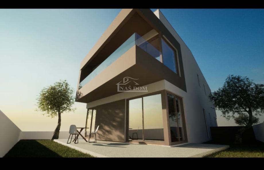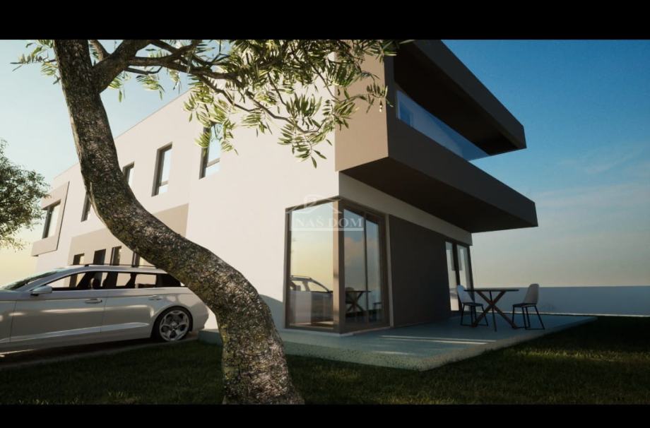 70 m od mora prodaje se moderna dvojna kuća, smještena u blizini svih potrebnih sadržaja. Kuća je u fazi gradnje, a planirani rok useljenja je jesen 2025. godine. S neto korisnom površinom od 99,71 m2, kuća se prostire na dvije etaže, a uz to ima i 135,72 m2 okućnice, te dva parkirna mjesta.