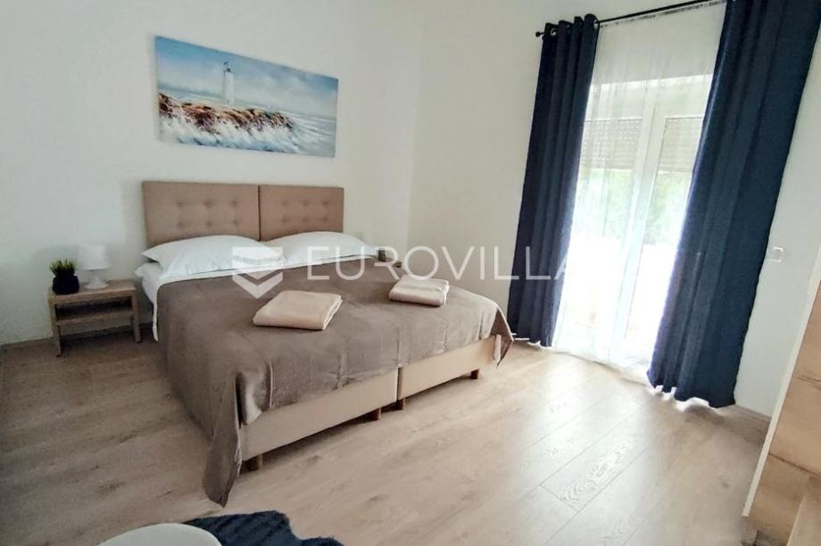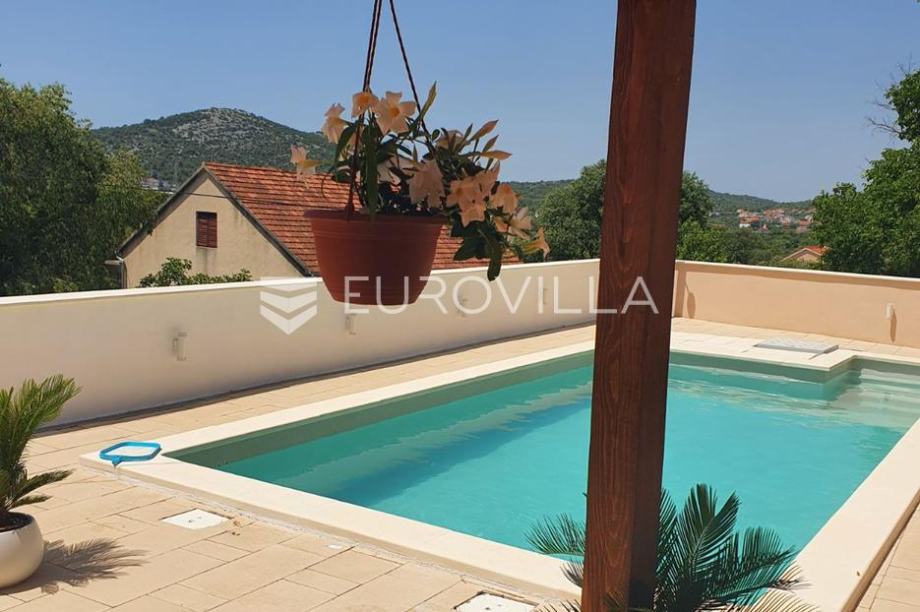 Predgrađe Šibenika, renovirana i novouređena kuća katnica, s bazenom i dvorištem.U mirnom obiteljskom djelu naselja nalazi se samostojeća kuća s bazenom, natkrivenom terasom, sunčalištem, vrtom i parkingom.Kuća površine 215 m2 bruto, razvedena je na dvije etaže, prizemlje i kat, a u...