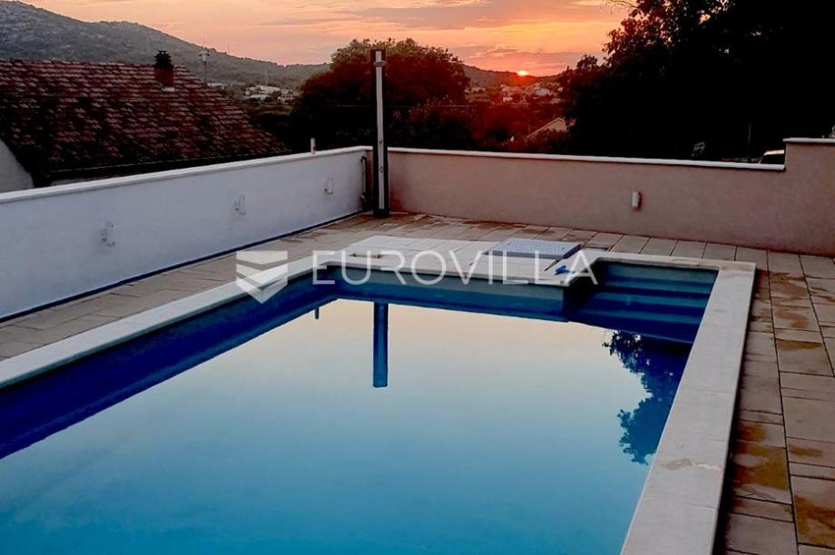 Suburb of Šibenik, renovated and newly renovated two-story house, with a swimming pool and a yard.In a quiet family part of the settlement there is a detached house with a swimming pool, a covered terrace, a sundeck, a garden and a parking lot.The house has a gross area of 215 m2, is divided into...