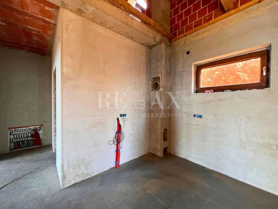 Na donjoj etaži, koja je izvedena u visokom rohbau, nalaze se dnevni boravak, kuhinja s otokom, tehnička soba, predsoblje, spavaća soba s walk-in ormarom te kupaonica. Gornja etaža je u niskom rohbau gdje se nalaze četiri spavaće sobe sa četiri kupaonice.